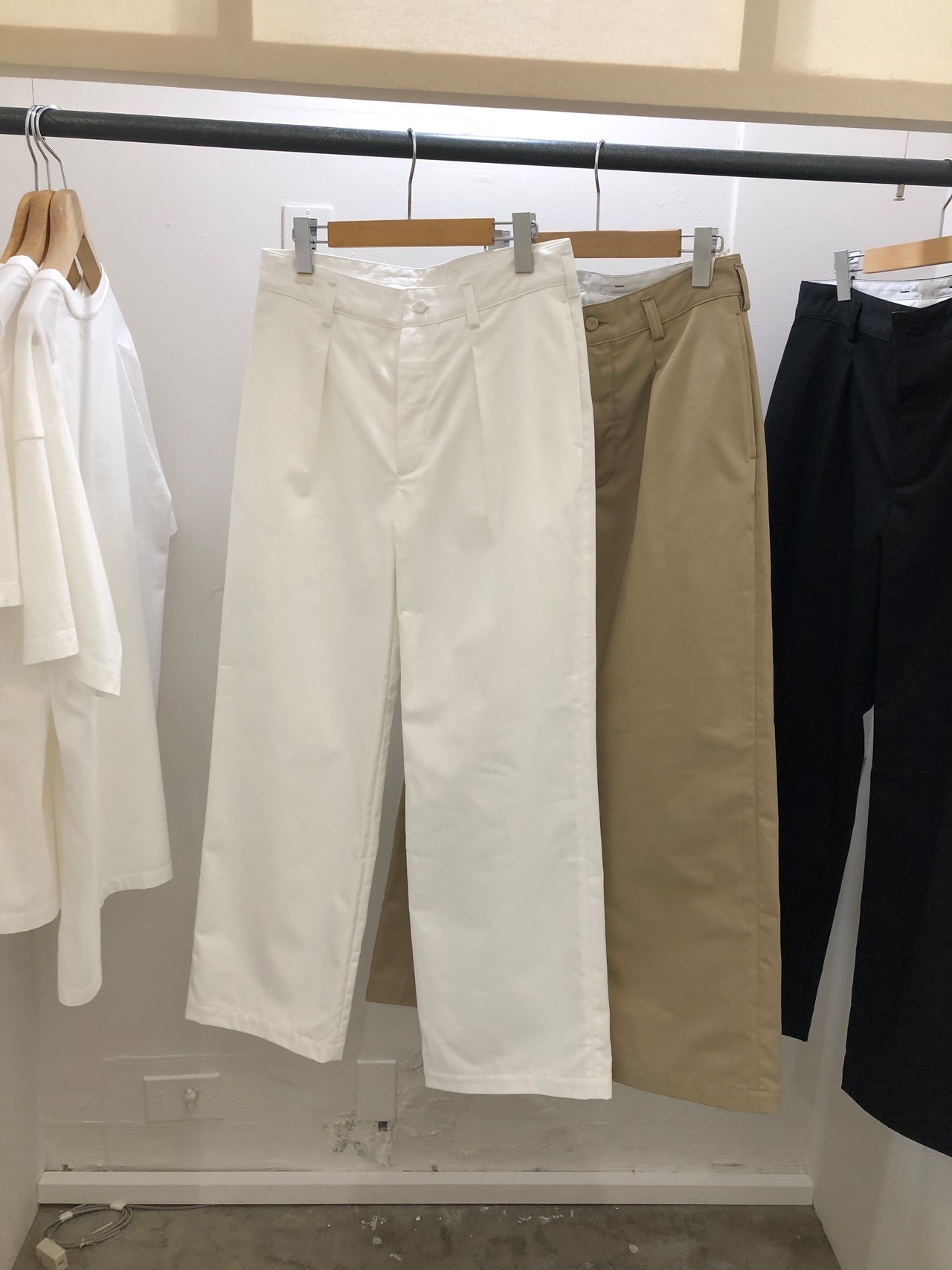 しなやかで光沢のある洗練された印象のオーガニックコットンチノクロスによる。