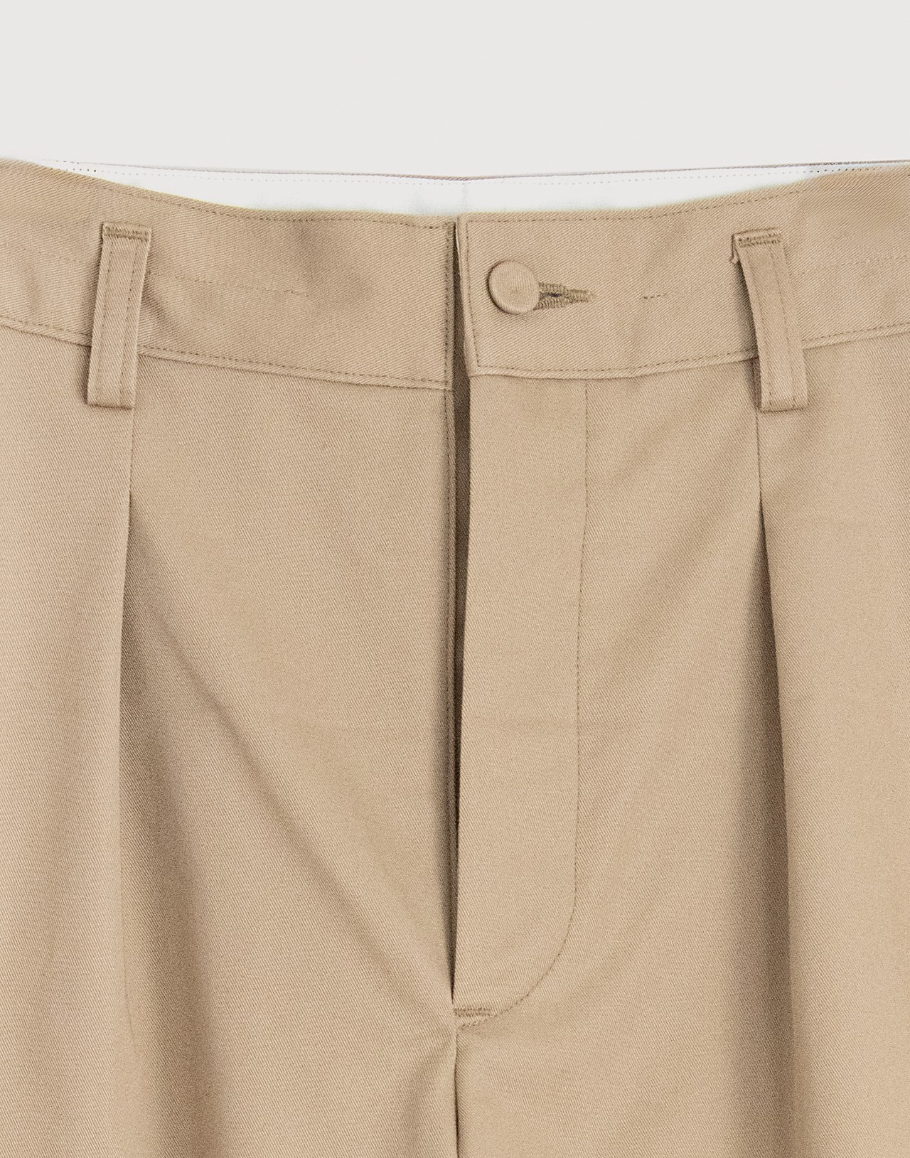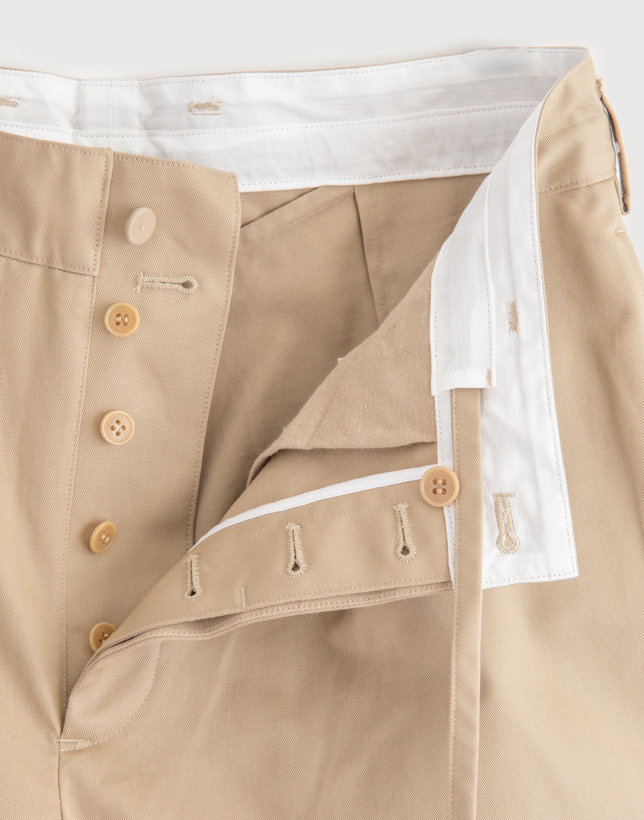 しなやかで光沢のある洗練された印象のオーガニックコットンチノクロスによる。