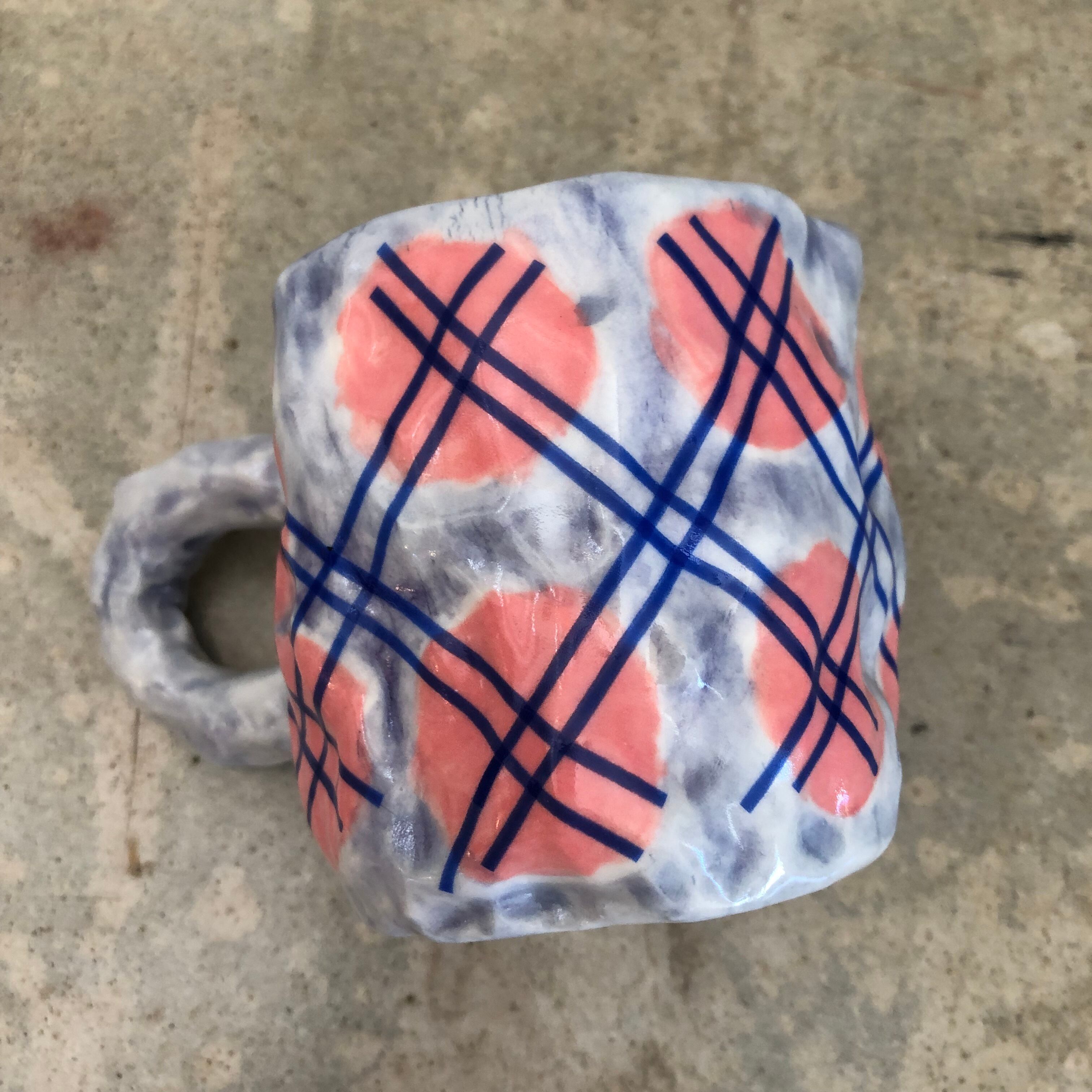 2年ぶりにSHOKKIにチェックをテーマにマグカップ、ミニプレートをつくっていただきました