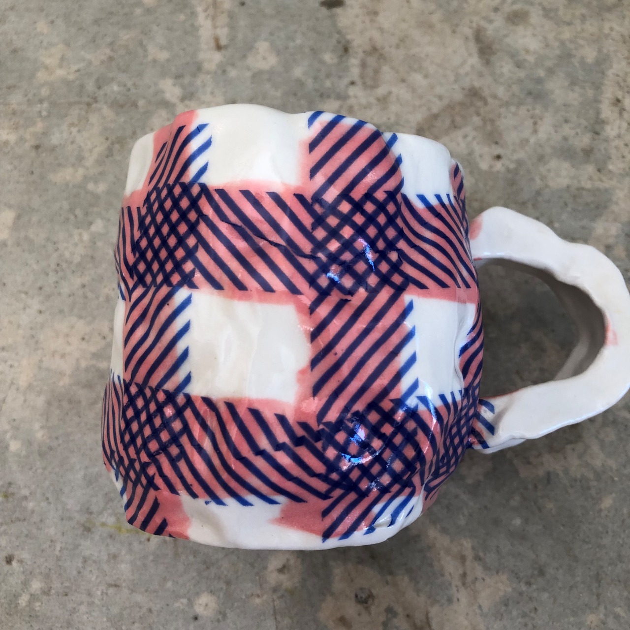 2年ぶりにSHOKKIにチェックをテーマにマグカップ、ミニプレートをつくっていただきました