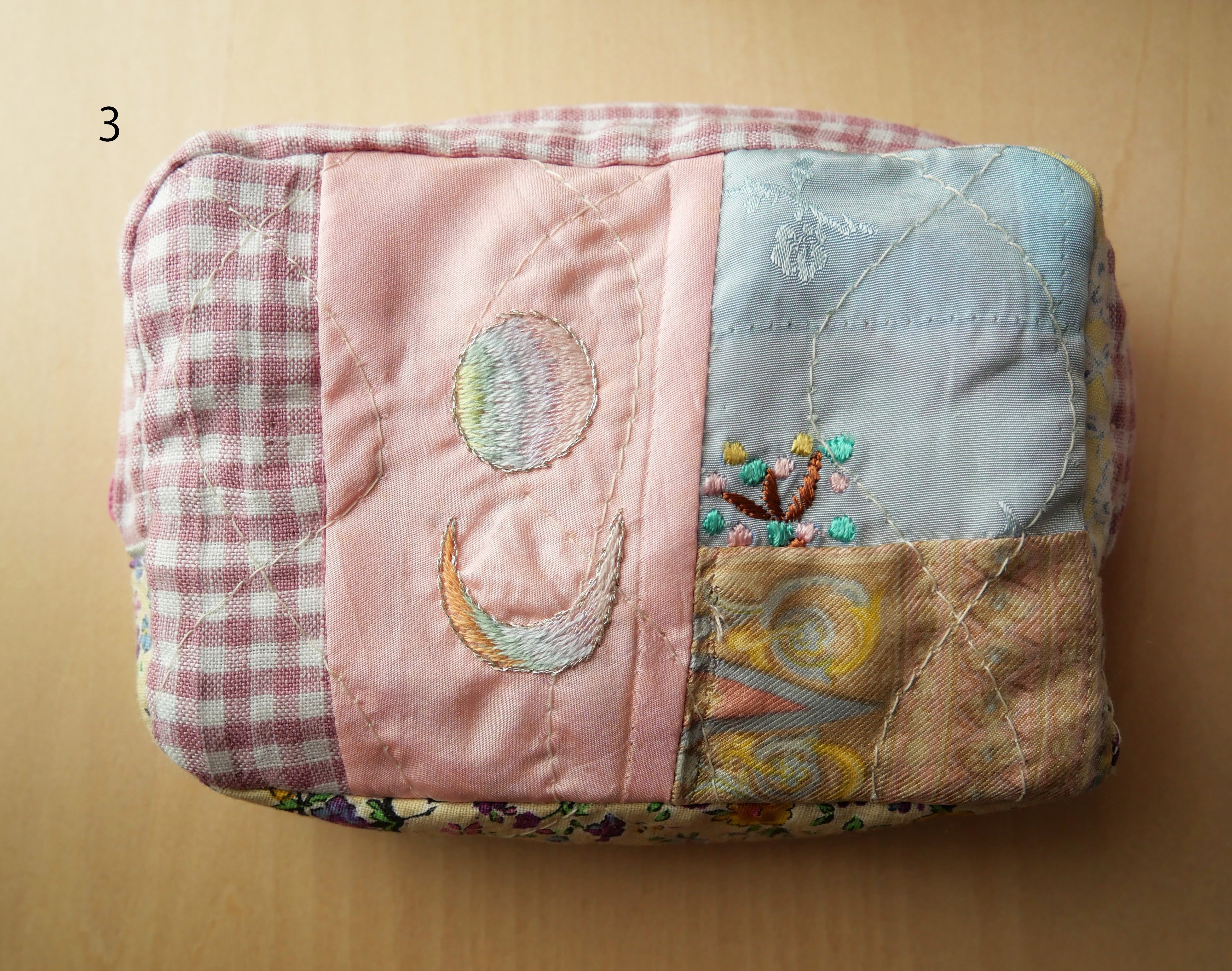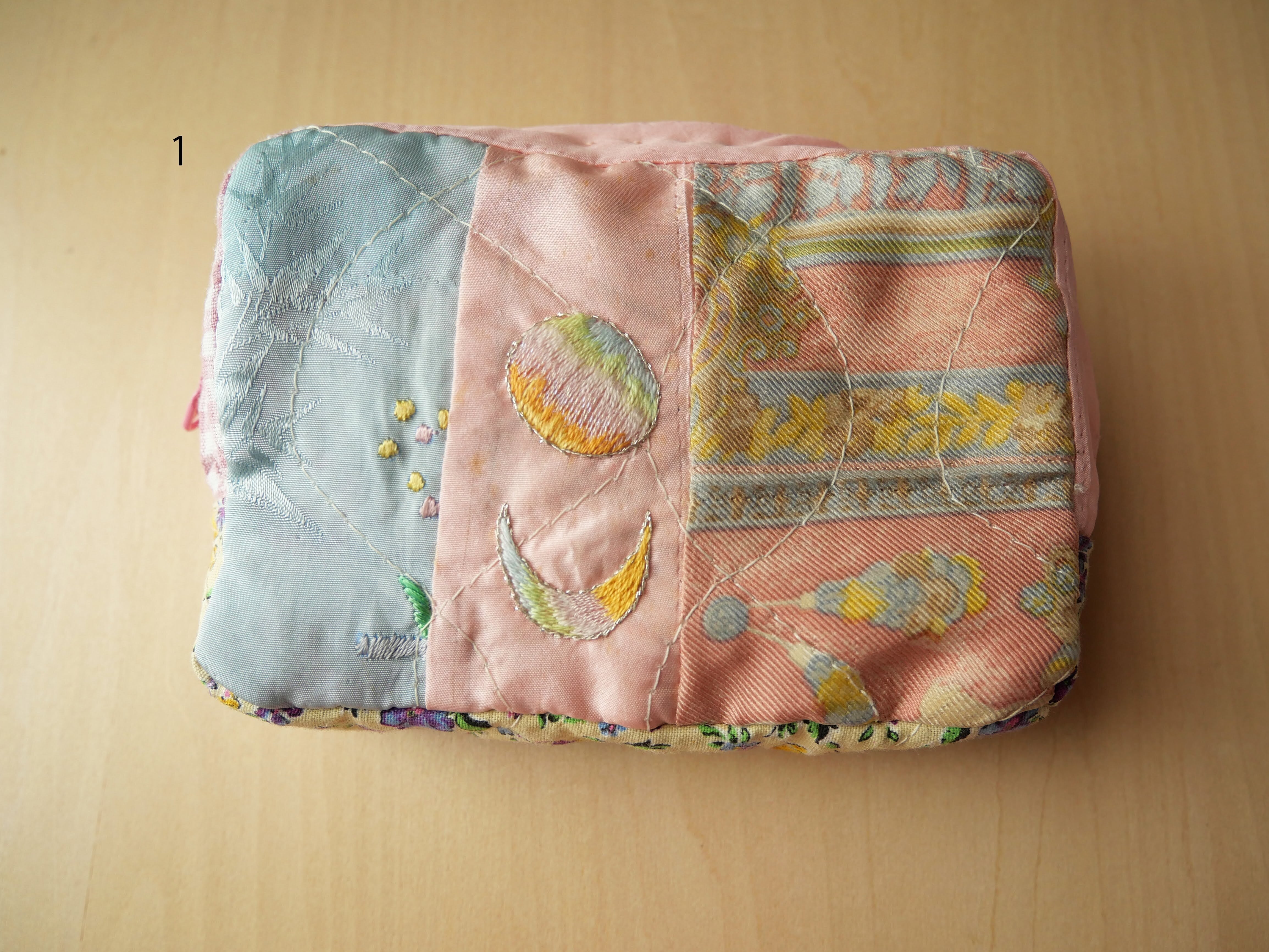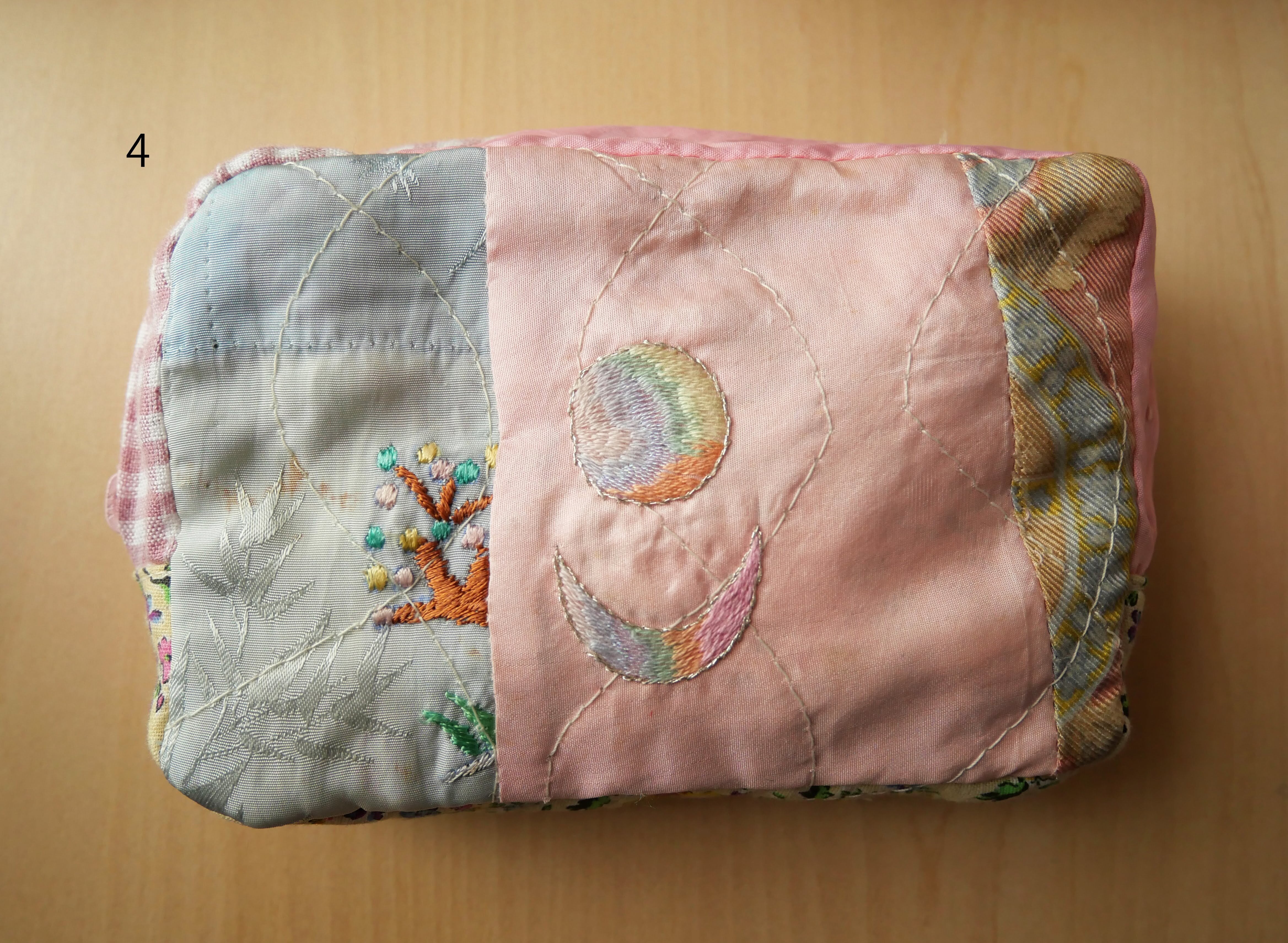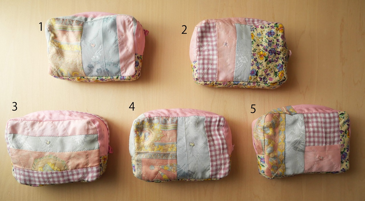 細部まで丁寧にパッチワークされたポーチ。