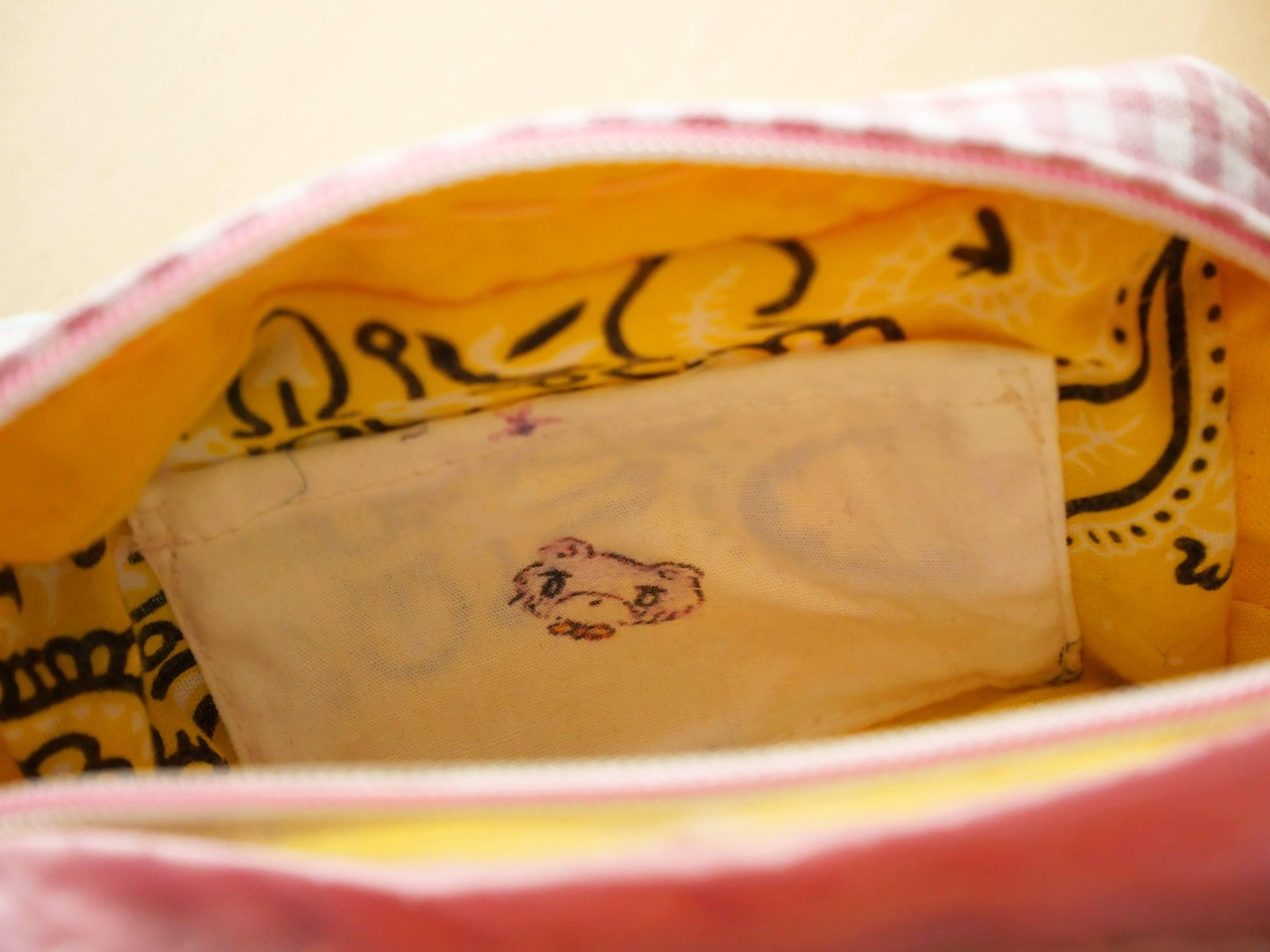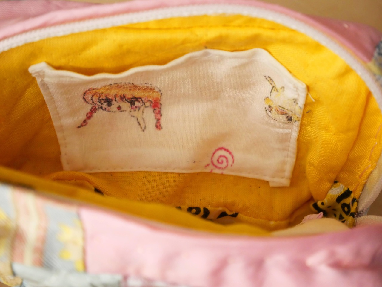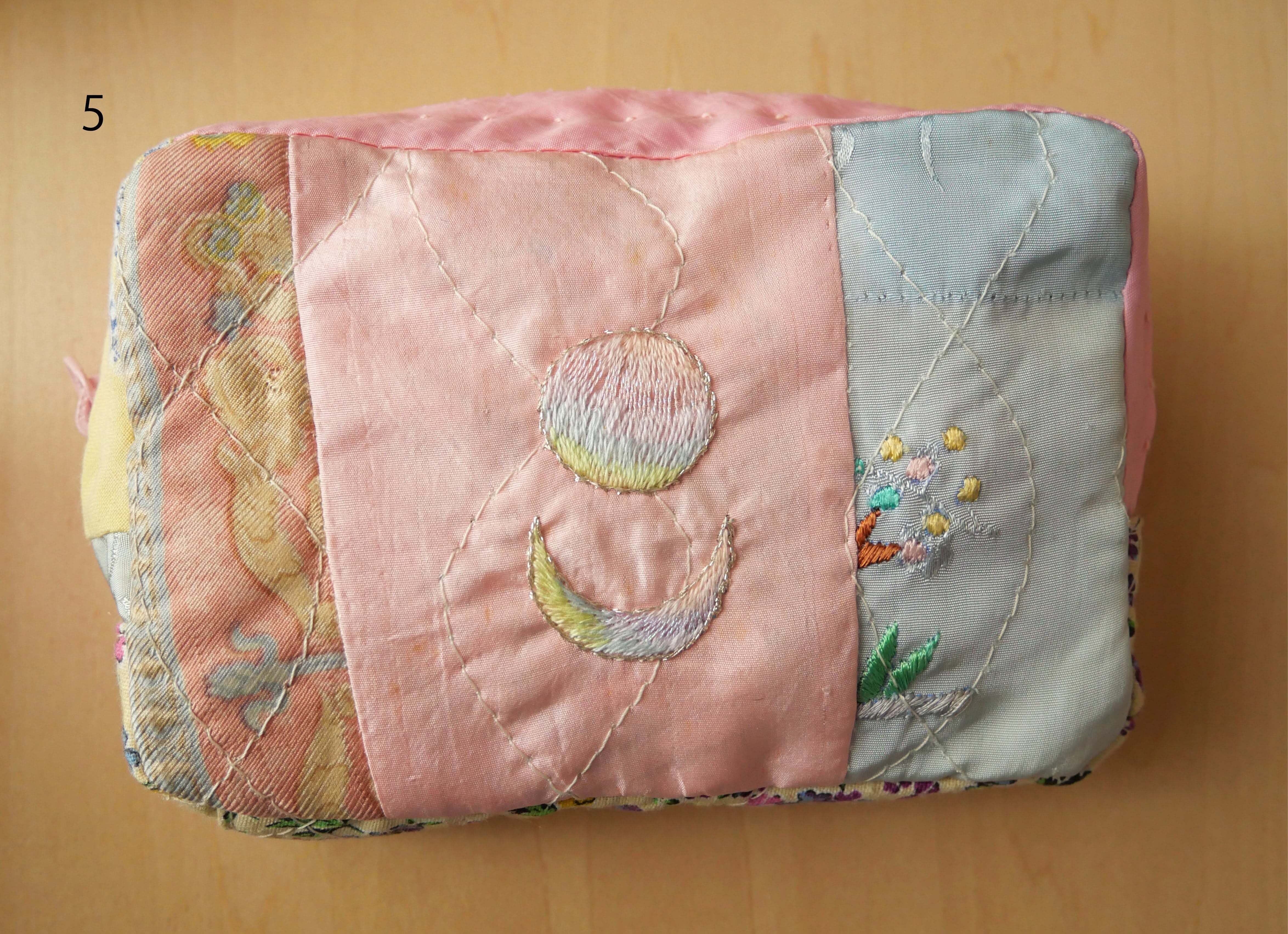 細部まで丁寧にパッチワークされたポーチ。