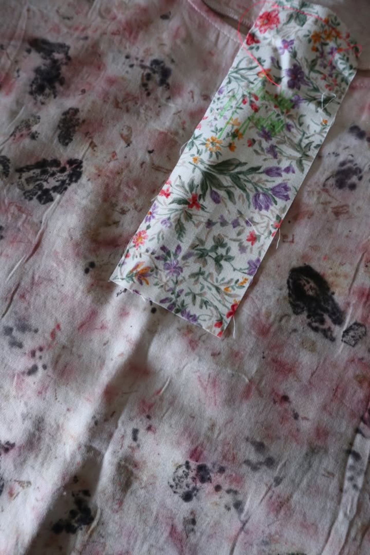 一枚、一枚に草花を置き染色されてます。