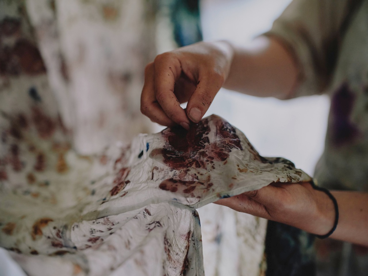 武蔵野美術大学卒業。染色家。伝統的な手染めの技法を用い、自然における色彩や質感の美しさをテーマに作品を制作する。