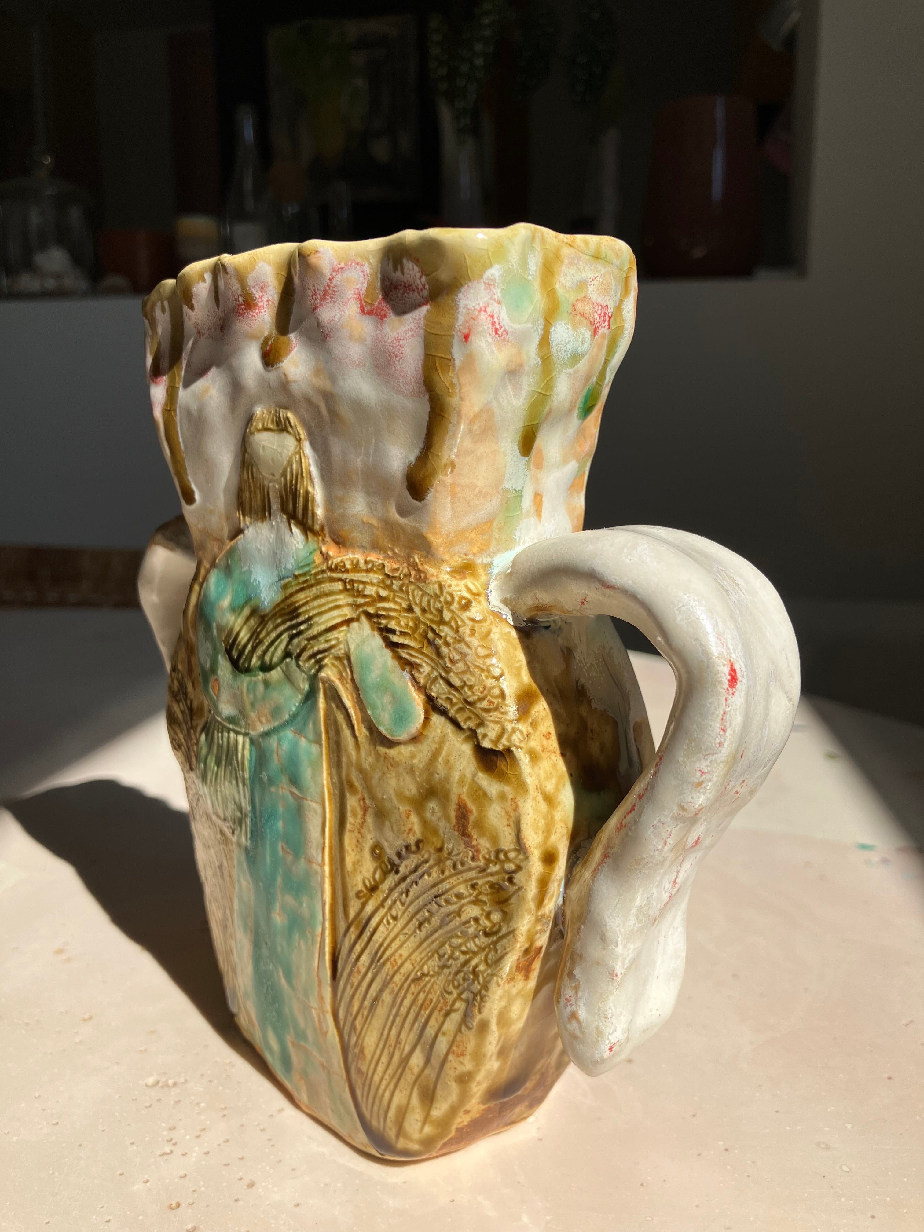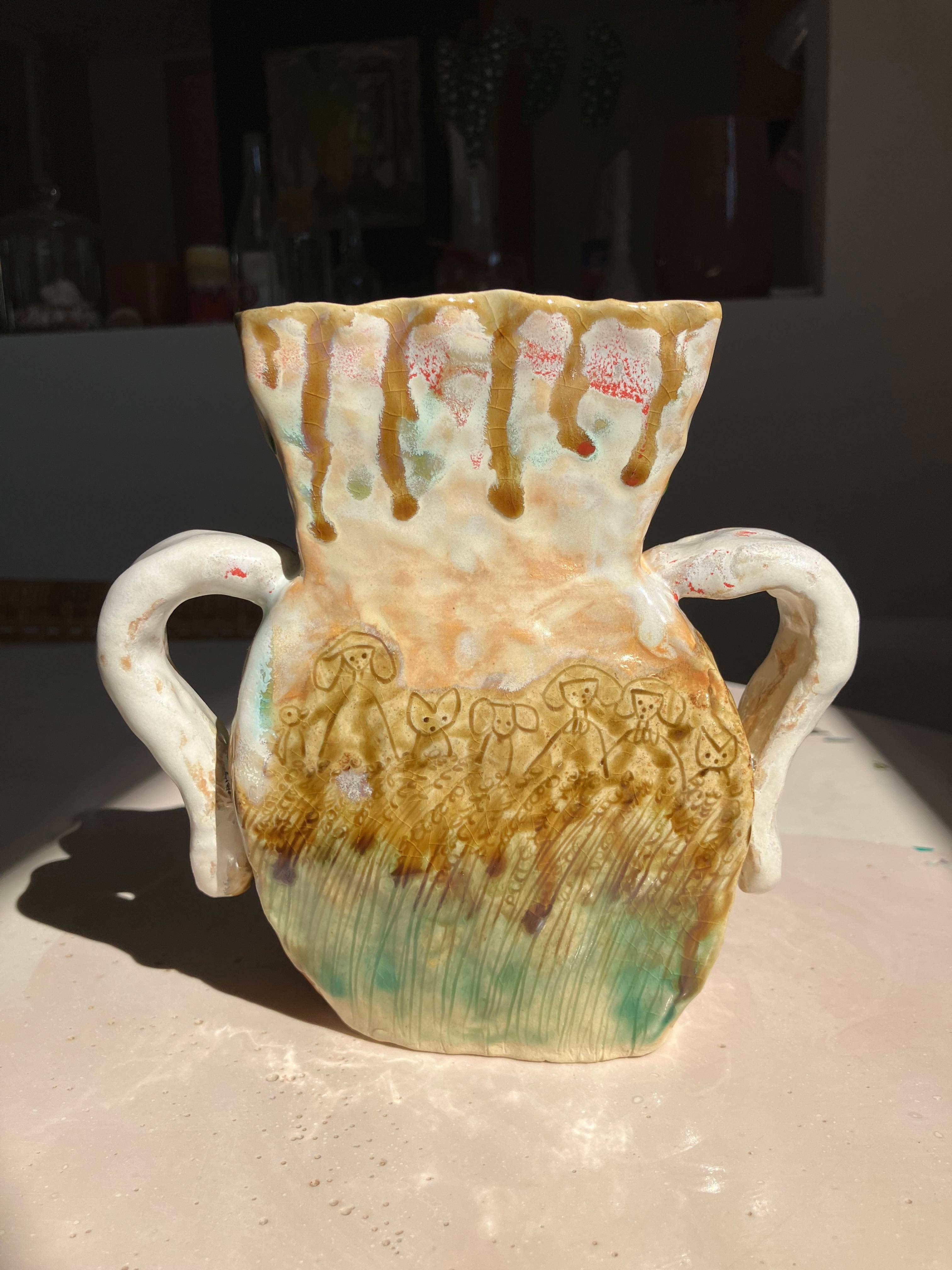 生活の中で欲しいなと思ったものをつくり、生き物や植物を陶芸の中に描いています。