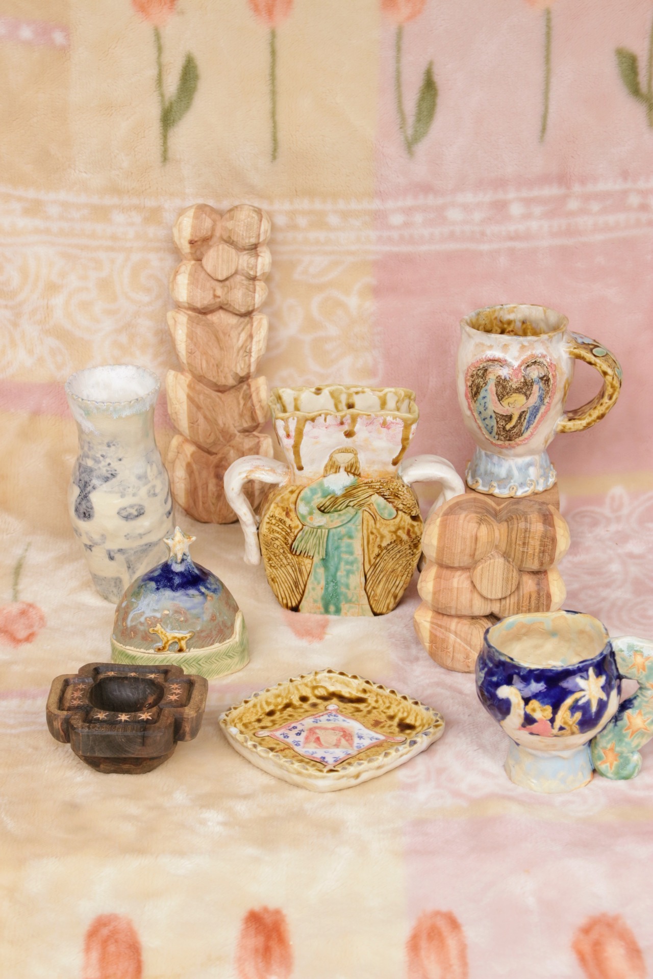 陶器と彫刻を起点に、便利さや機能性にとらわれない人の手によるいびつさを取り入れた生活を提案している。