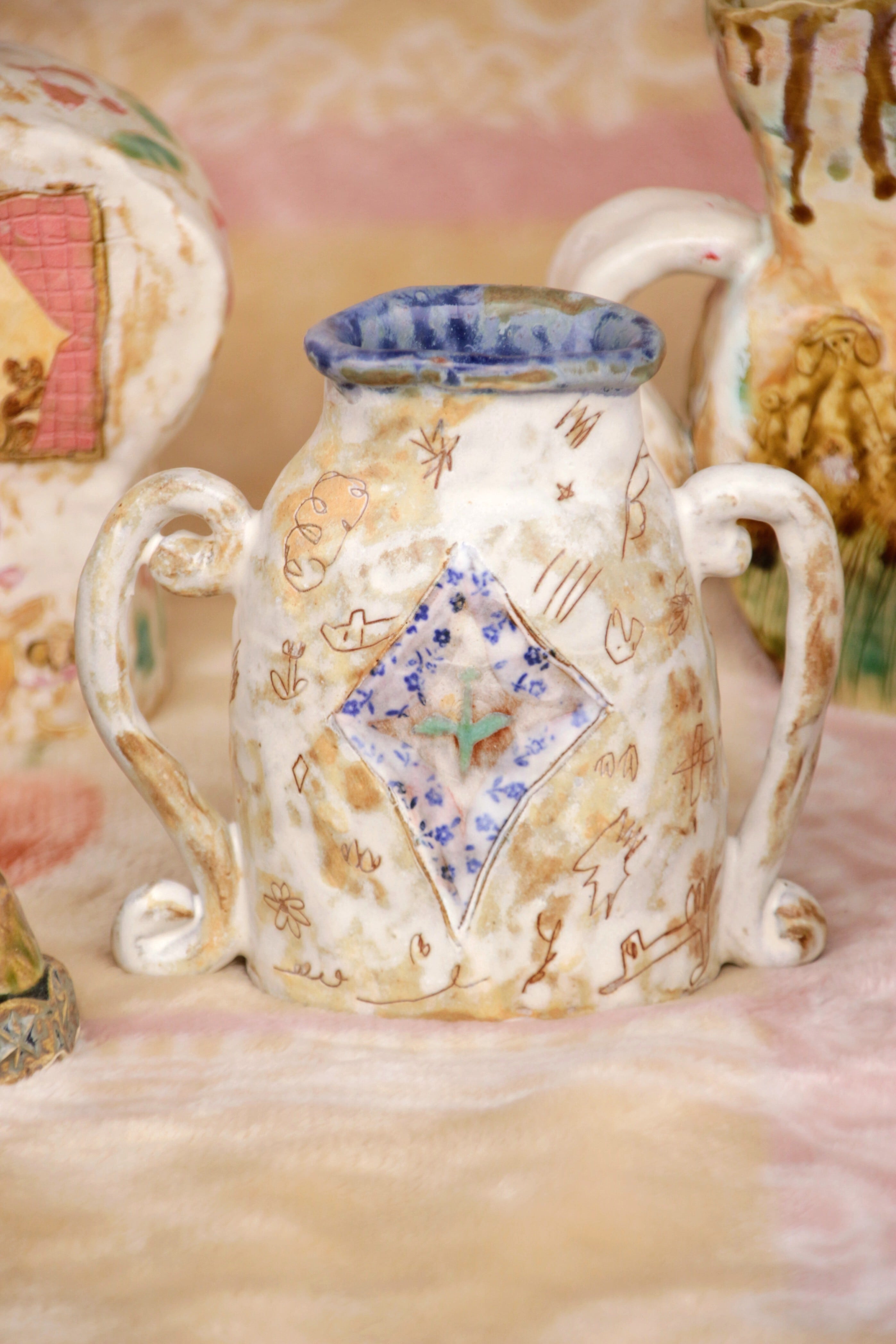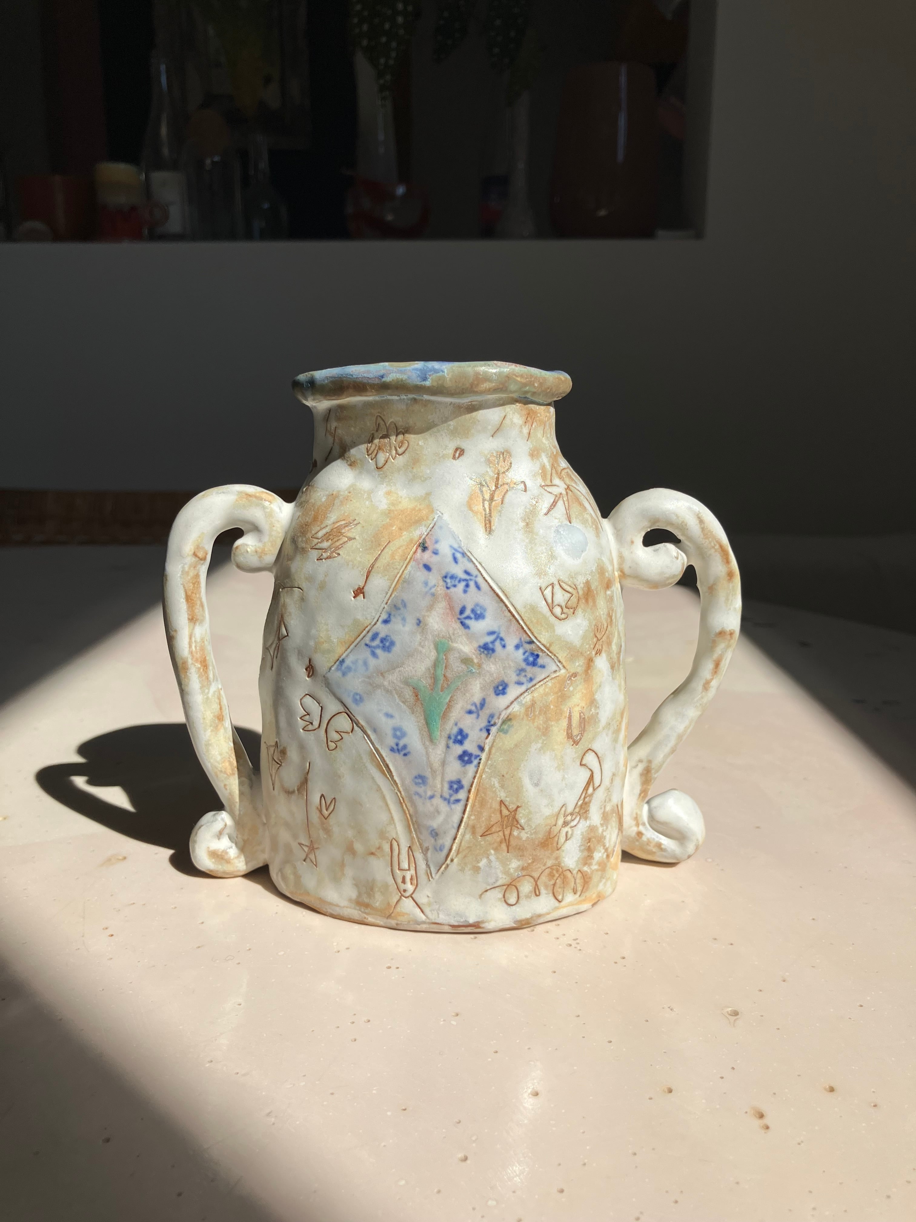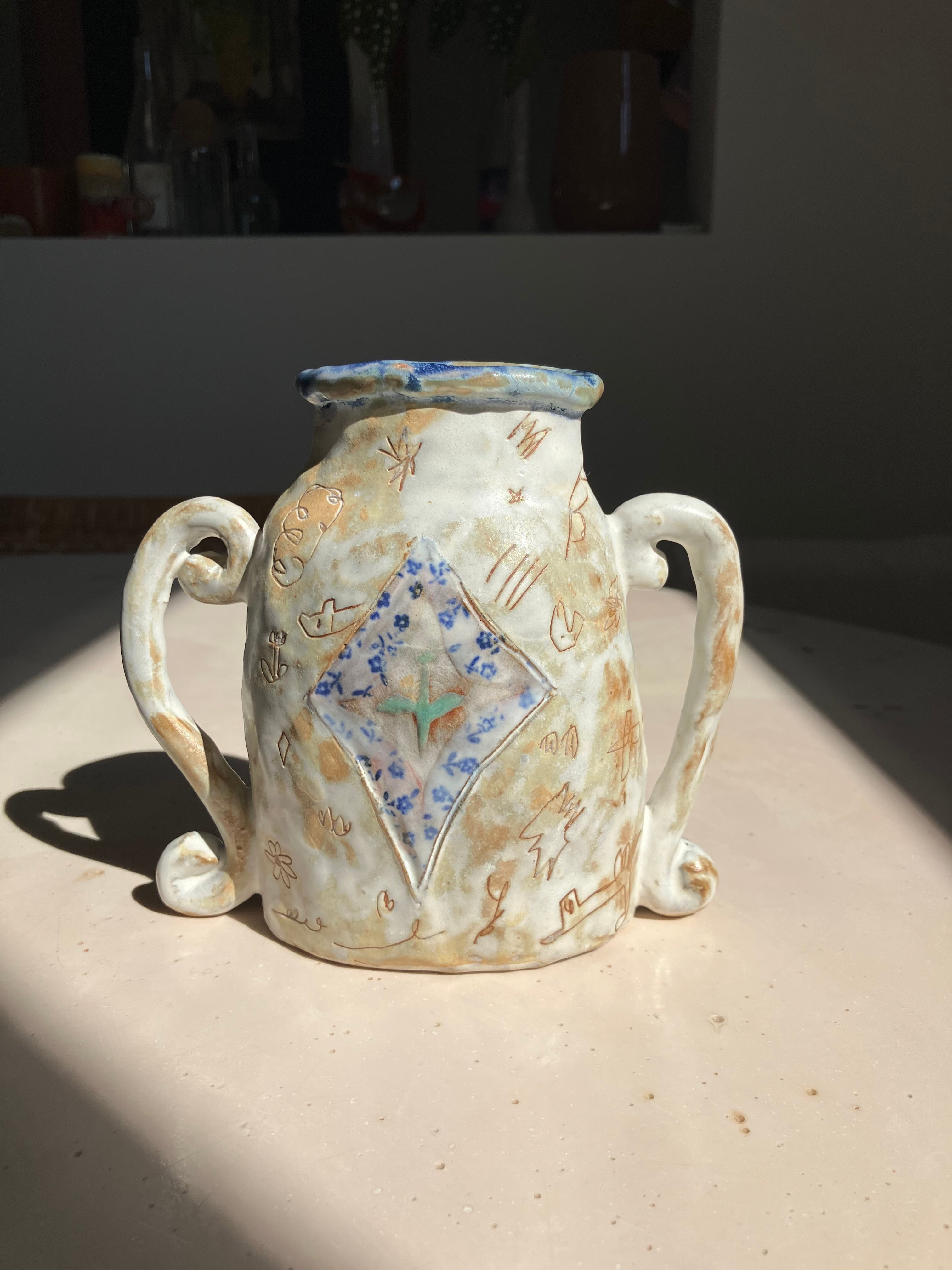 生活の中で欲しいなと思ったものをつくり、生き物や植物を陶芸の中に描いています。