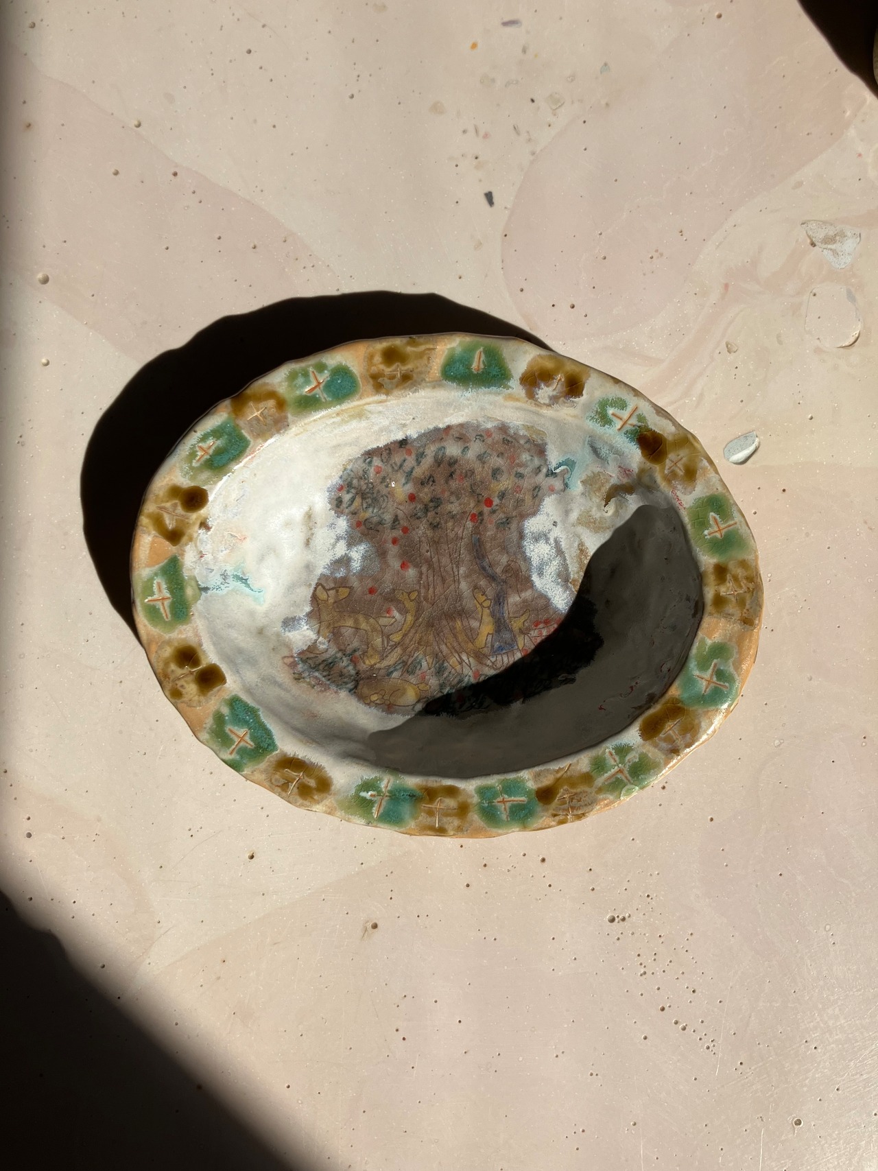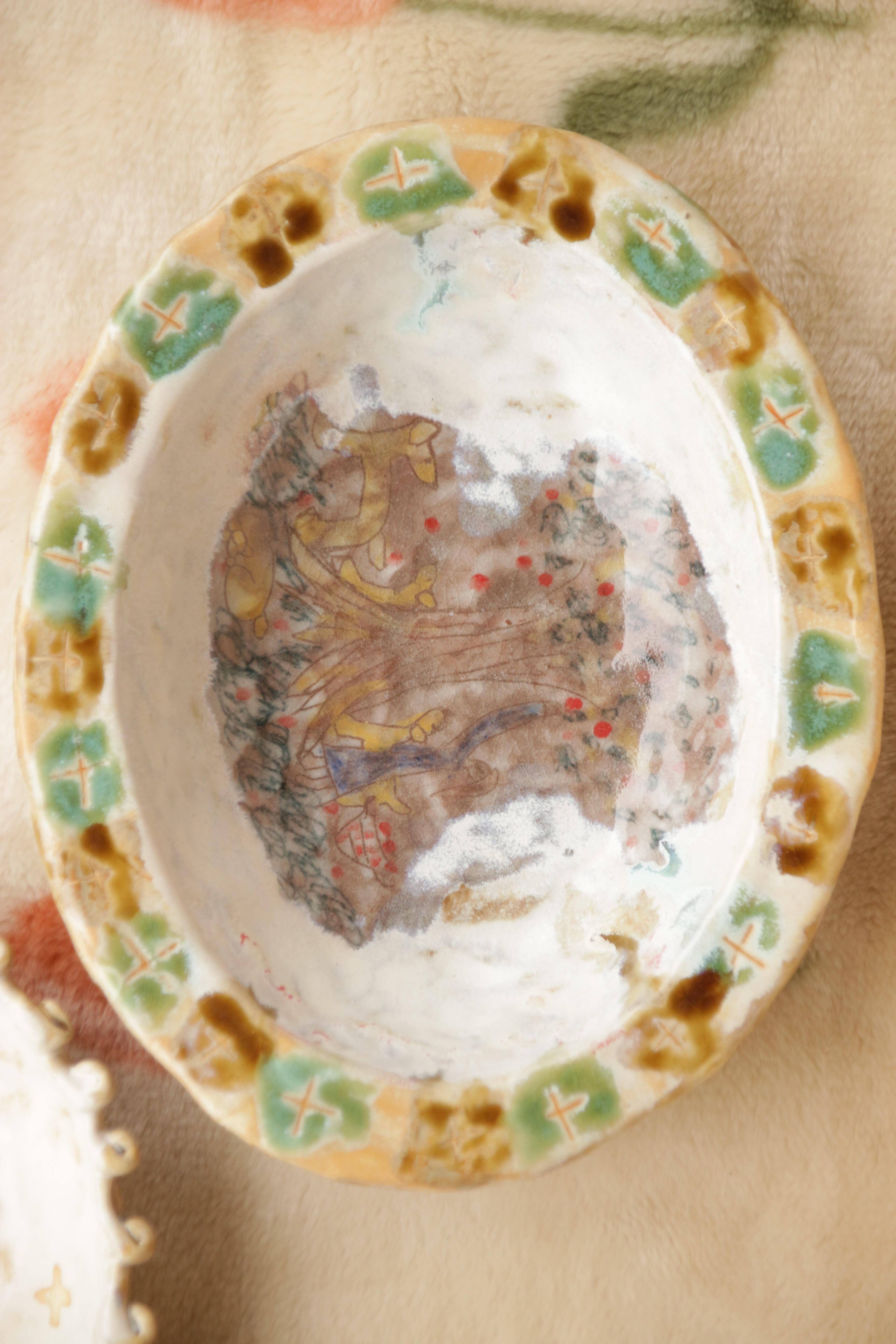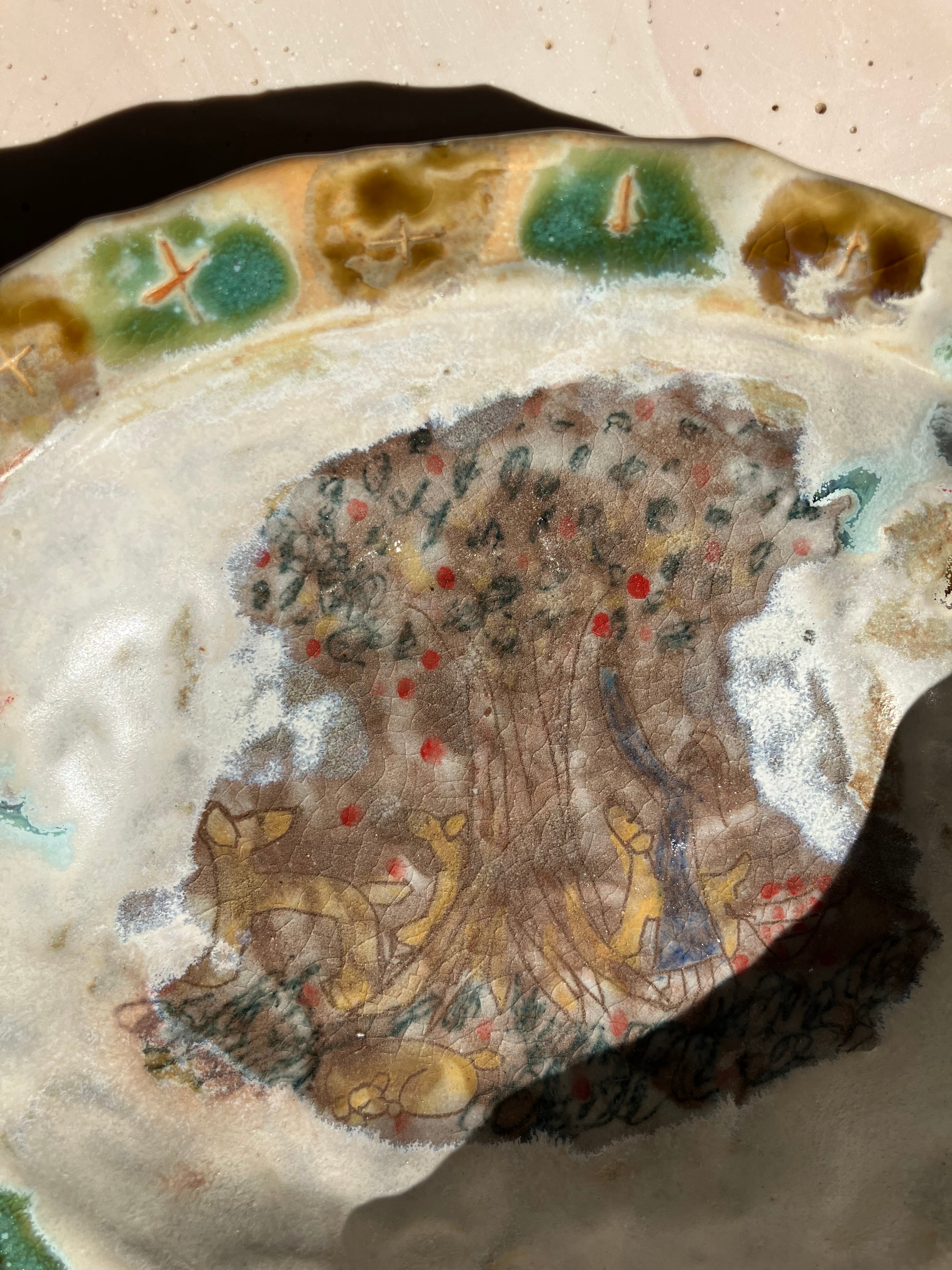 生活の中で欲しいなと思ったものをつくり、生き物や植物を陶芸の中に描いています。