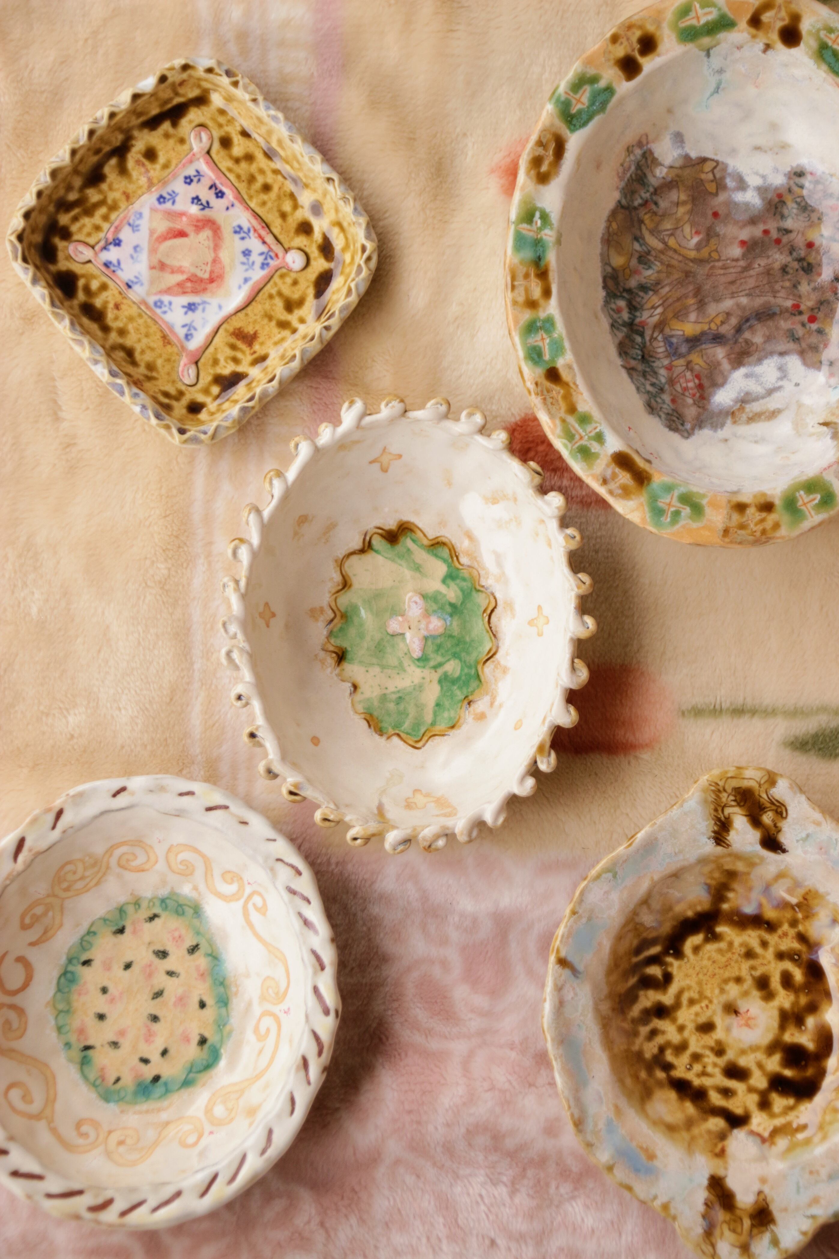 生活の中で欲しいなと思ったものをつくり、生き物や植物を陶芸の中に描いています。