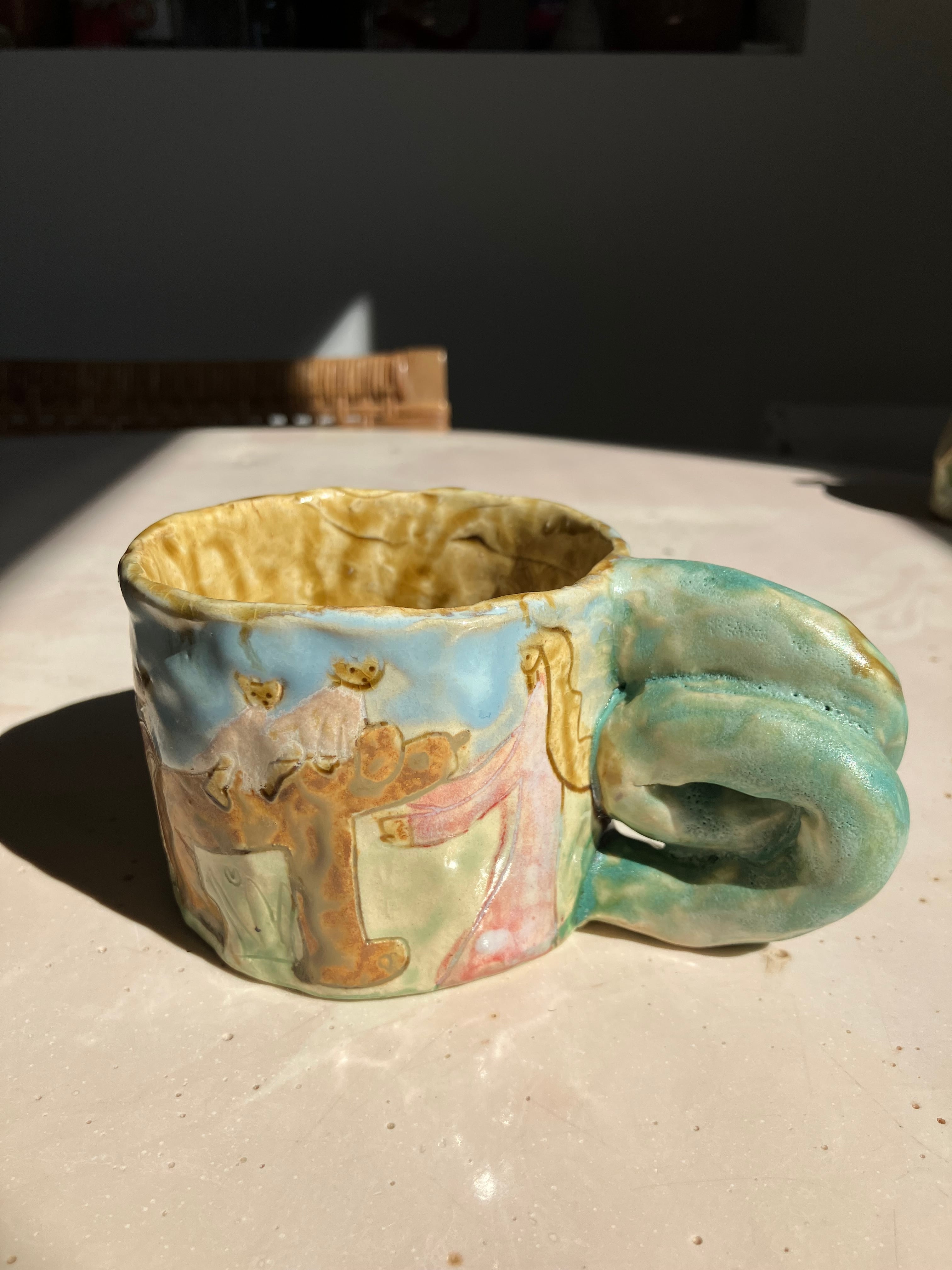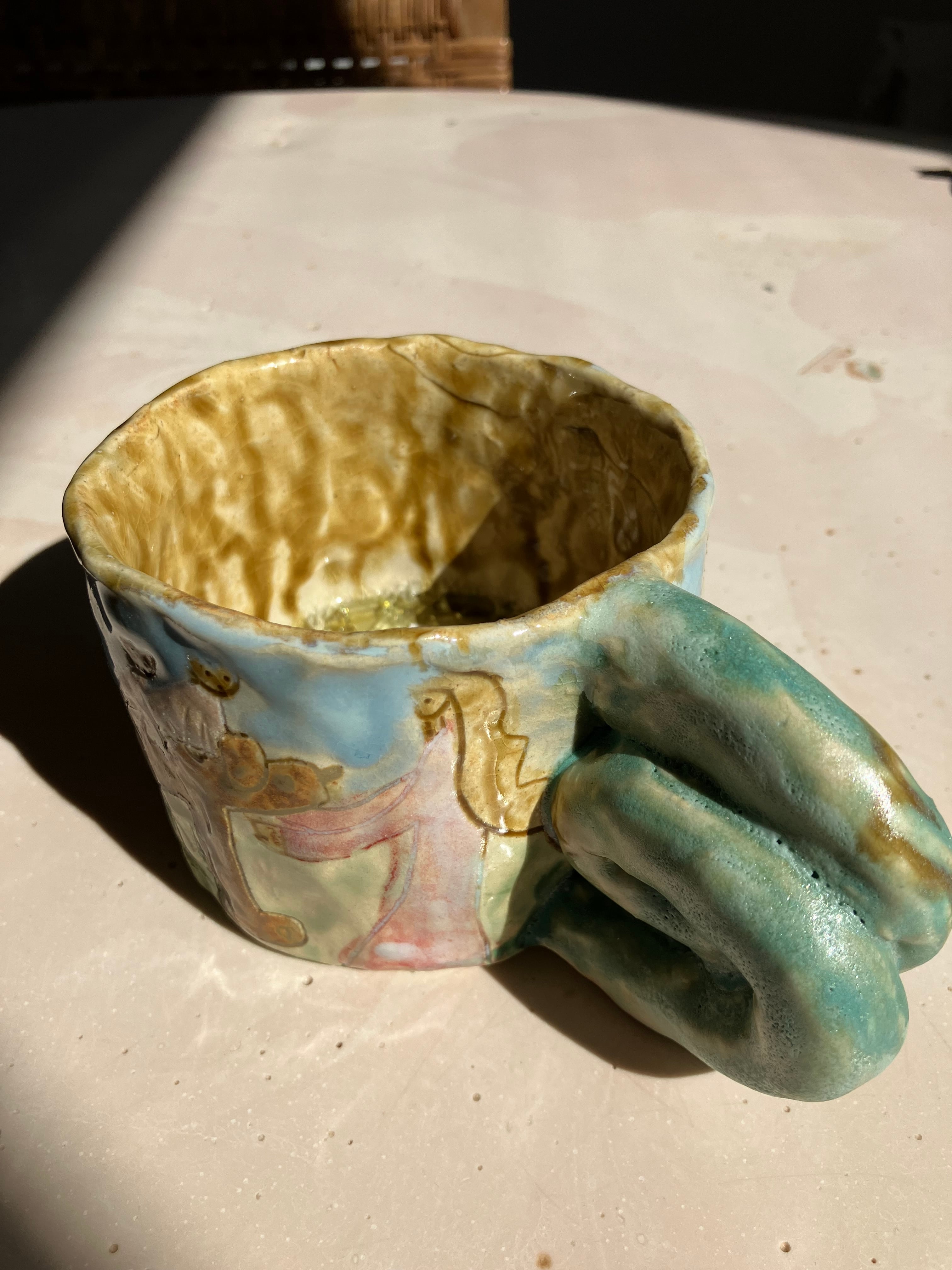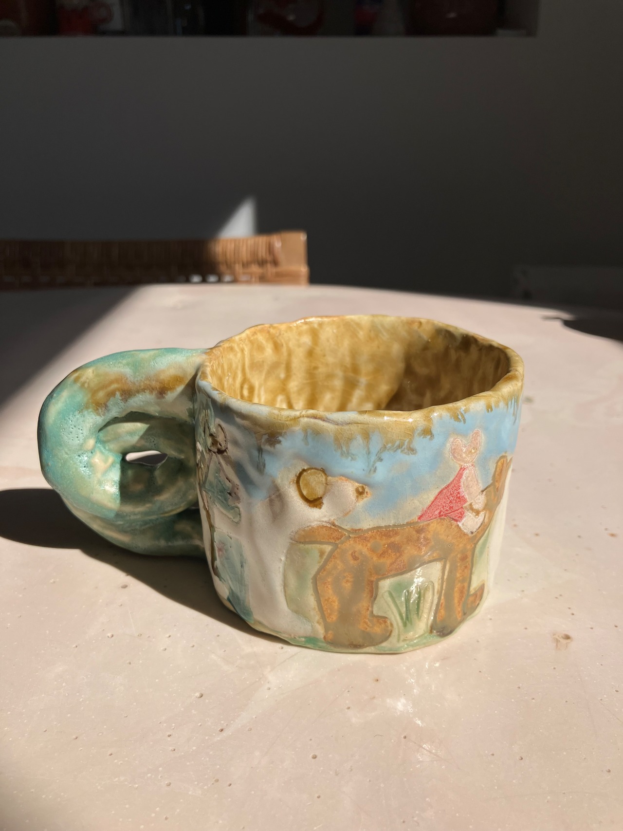 生活の中で欲しいなと思ったものをつくり、生き物や植物を陶芸の中に描いています。