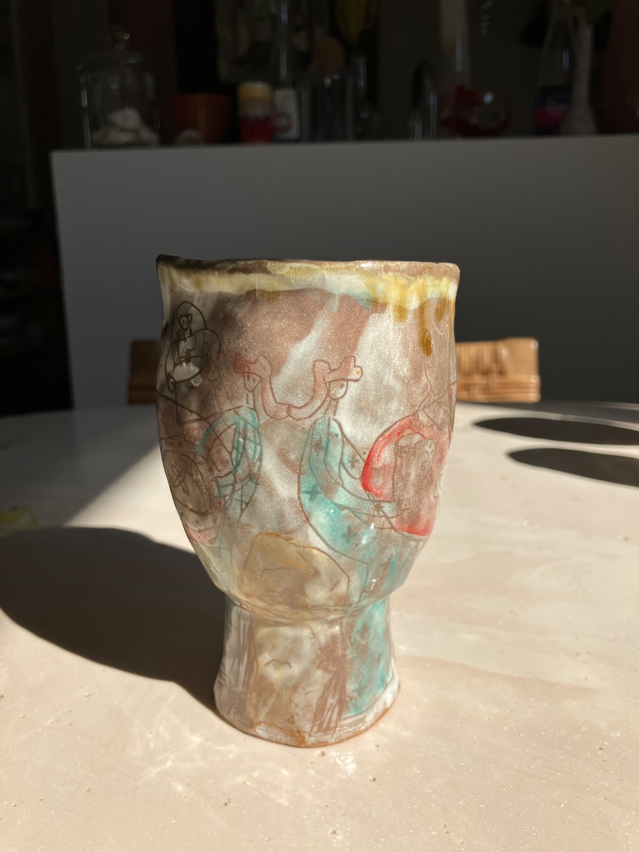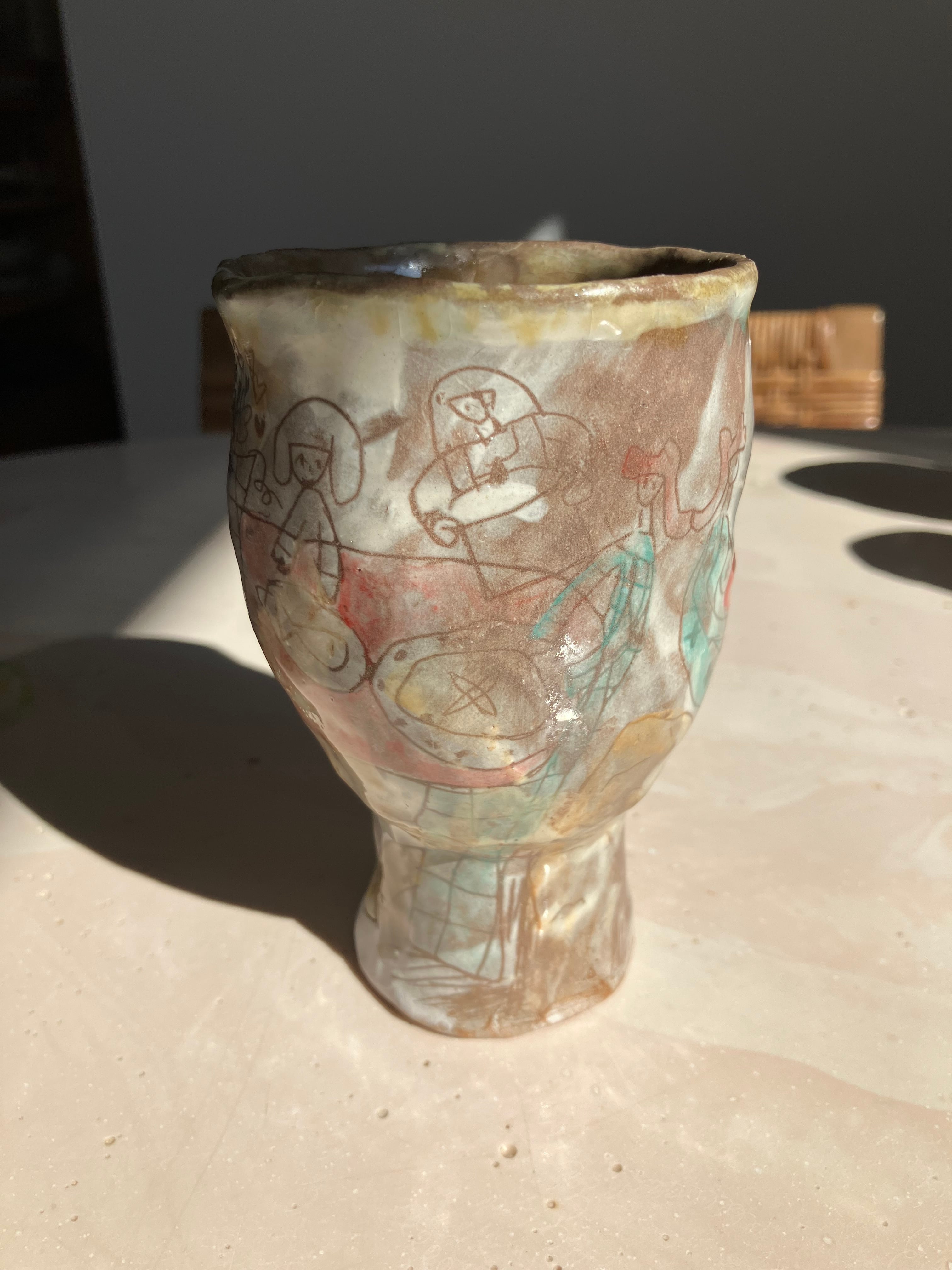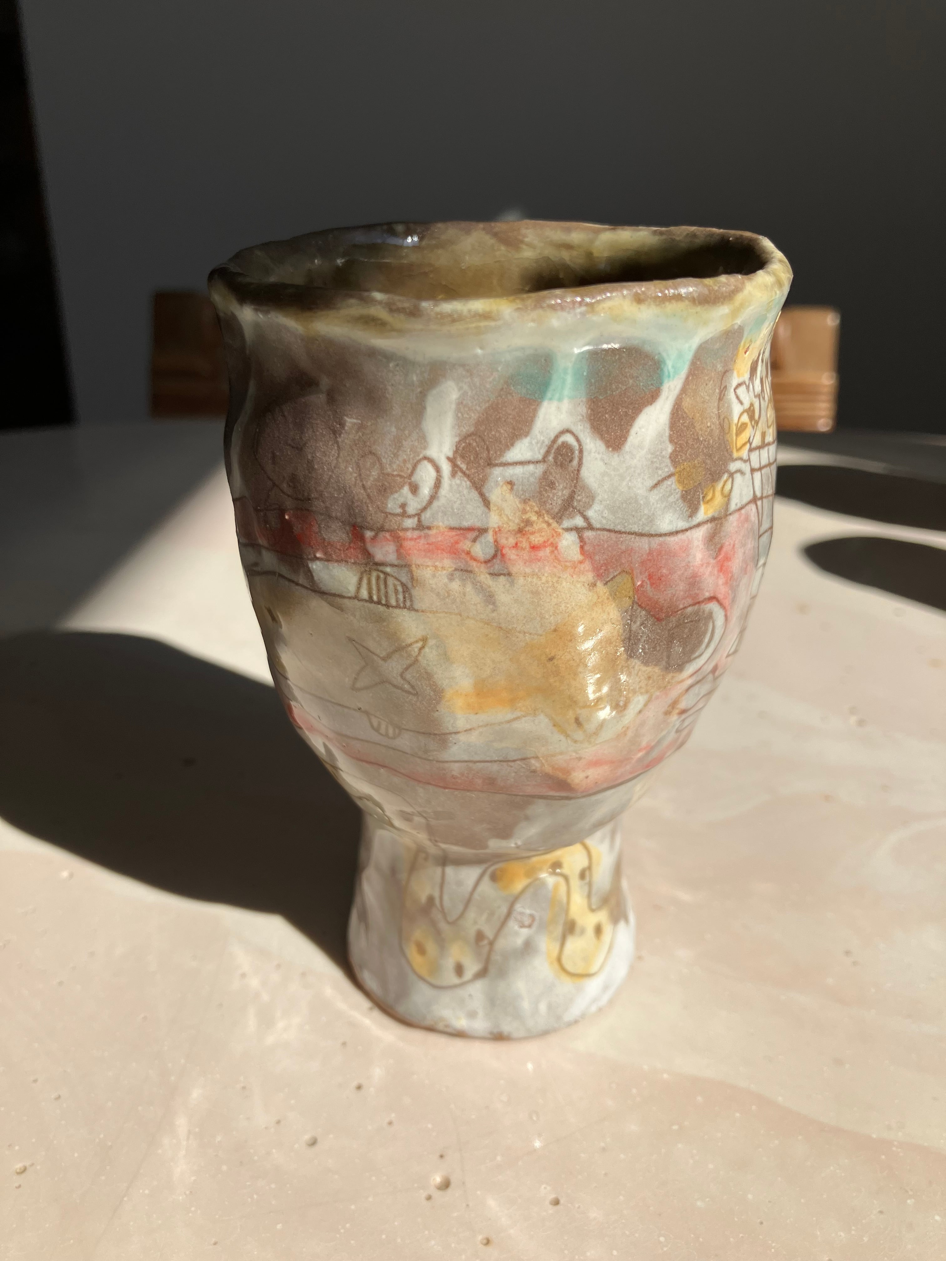 生活の中で欲しいなと思ったものをつくり、生き物や植物を陶芸の中に描いています。