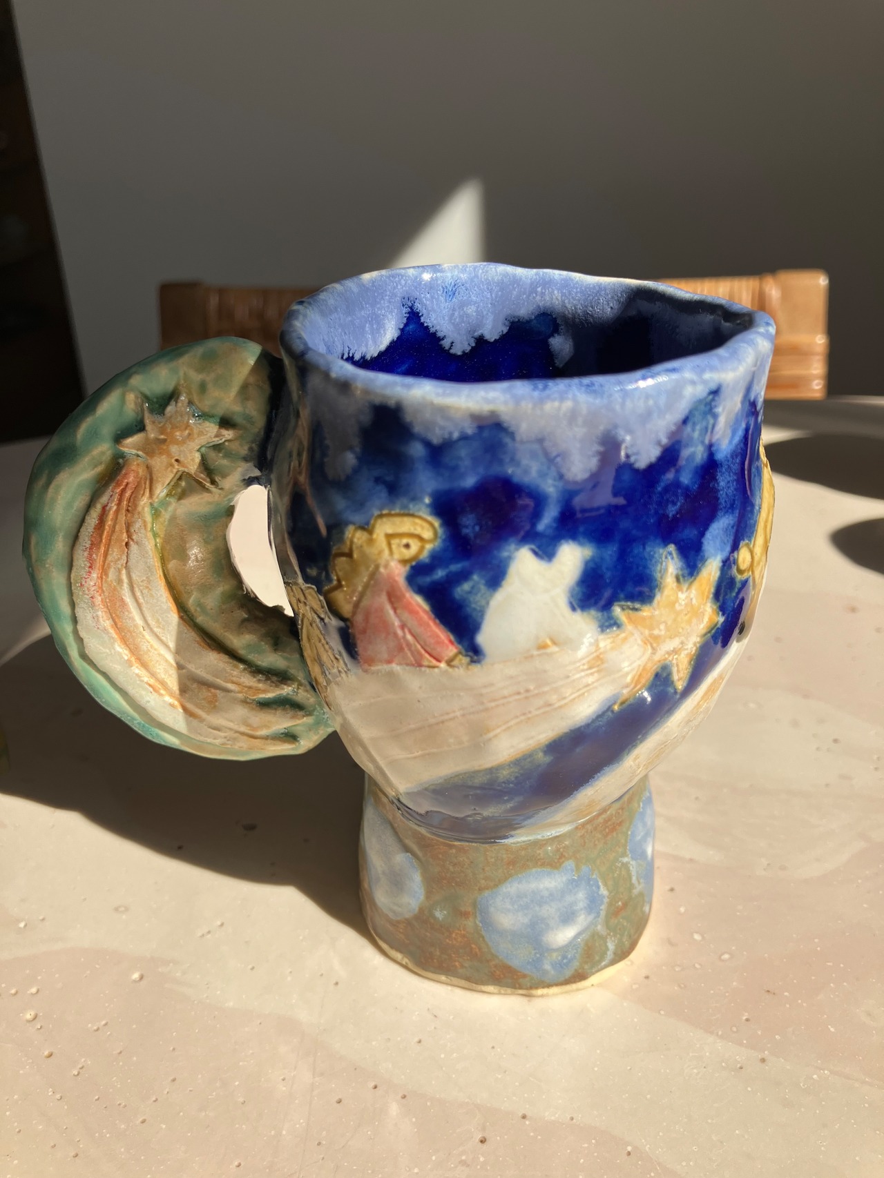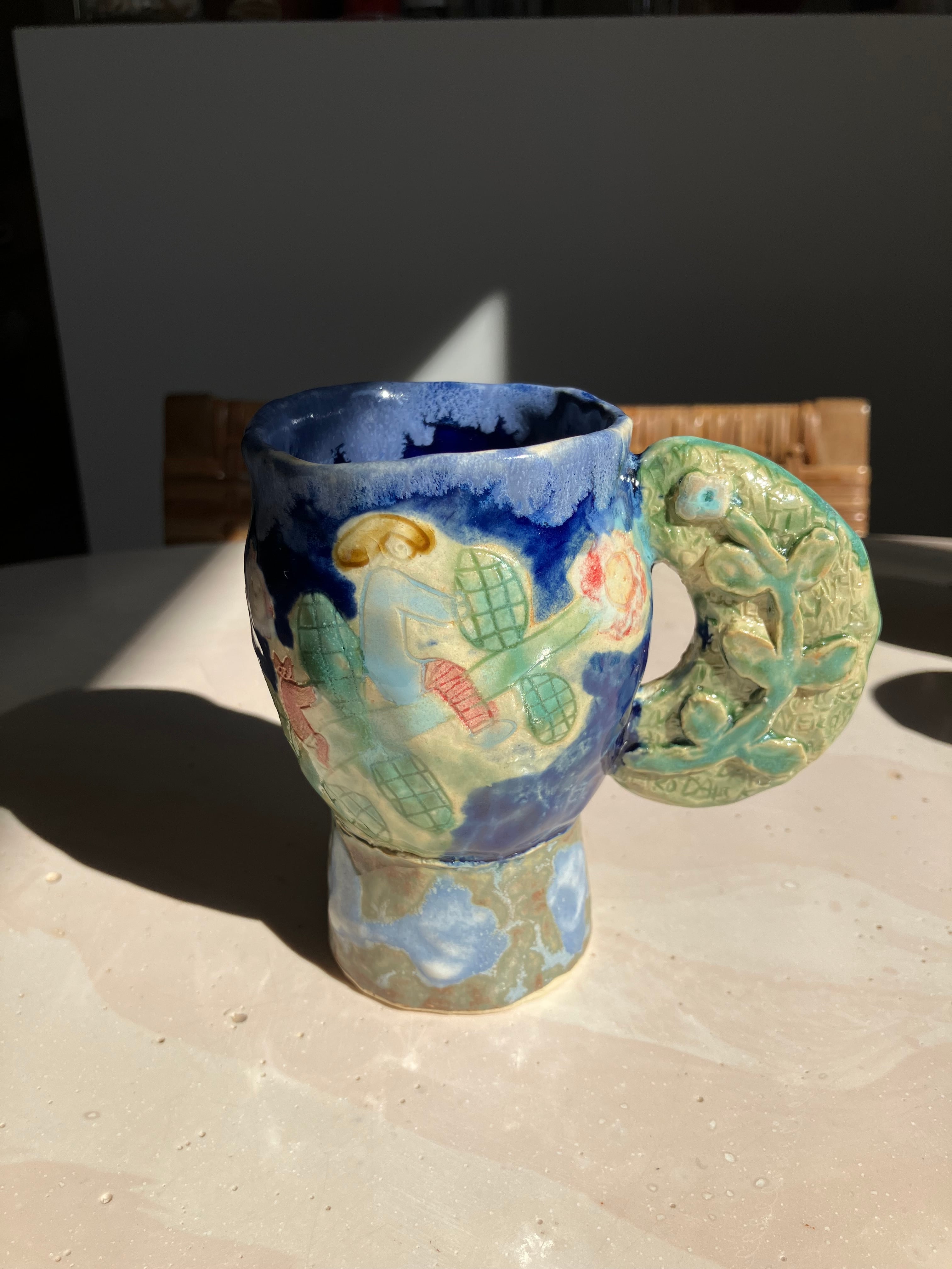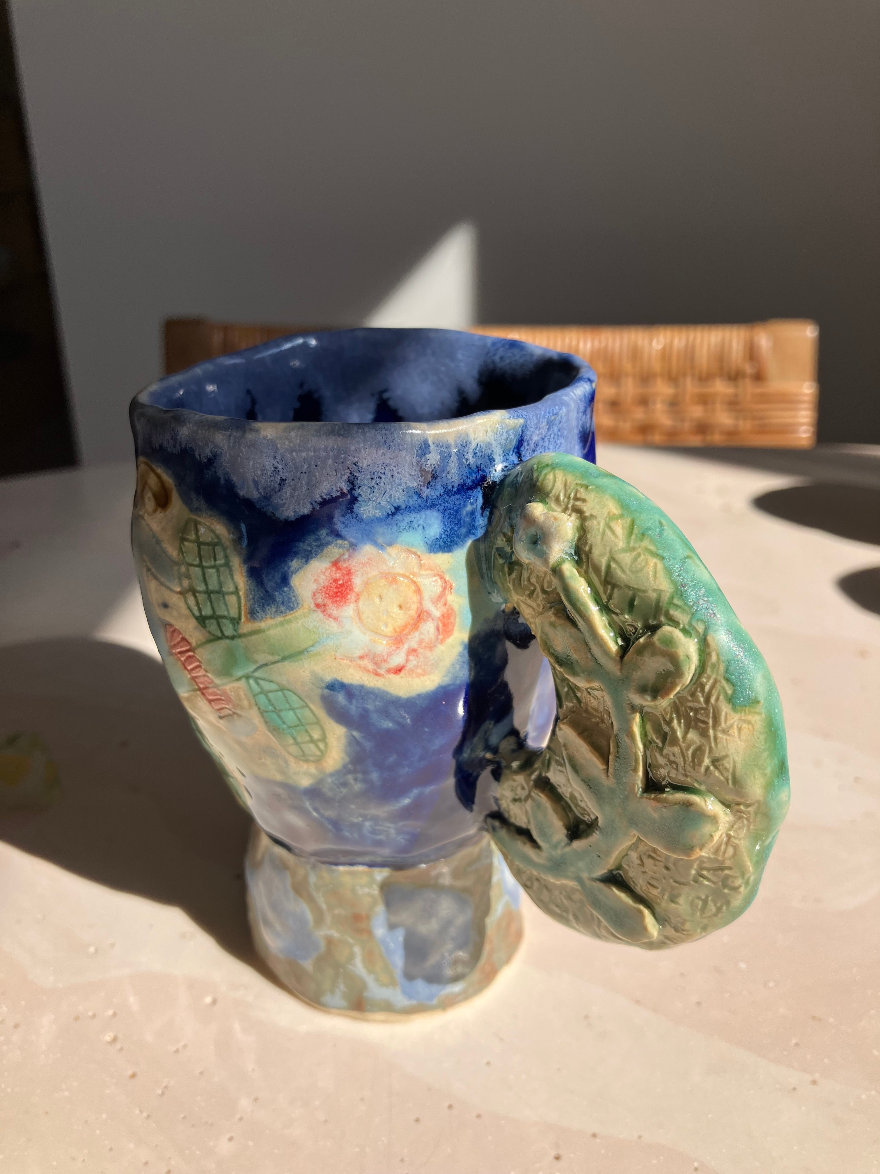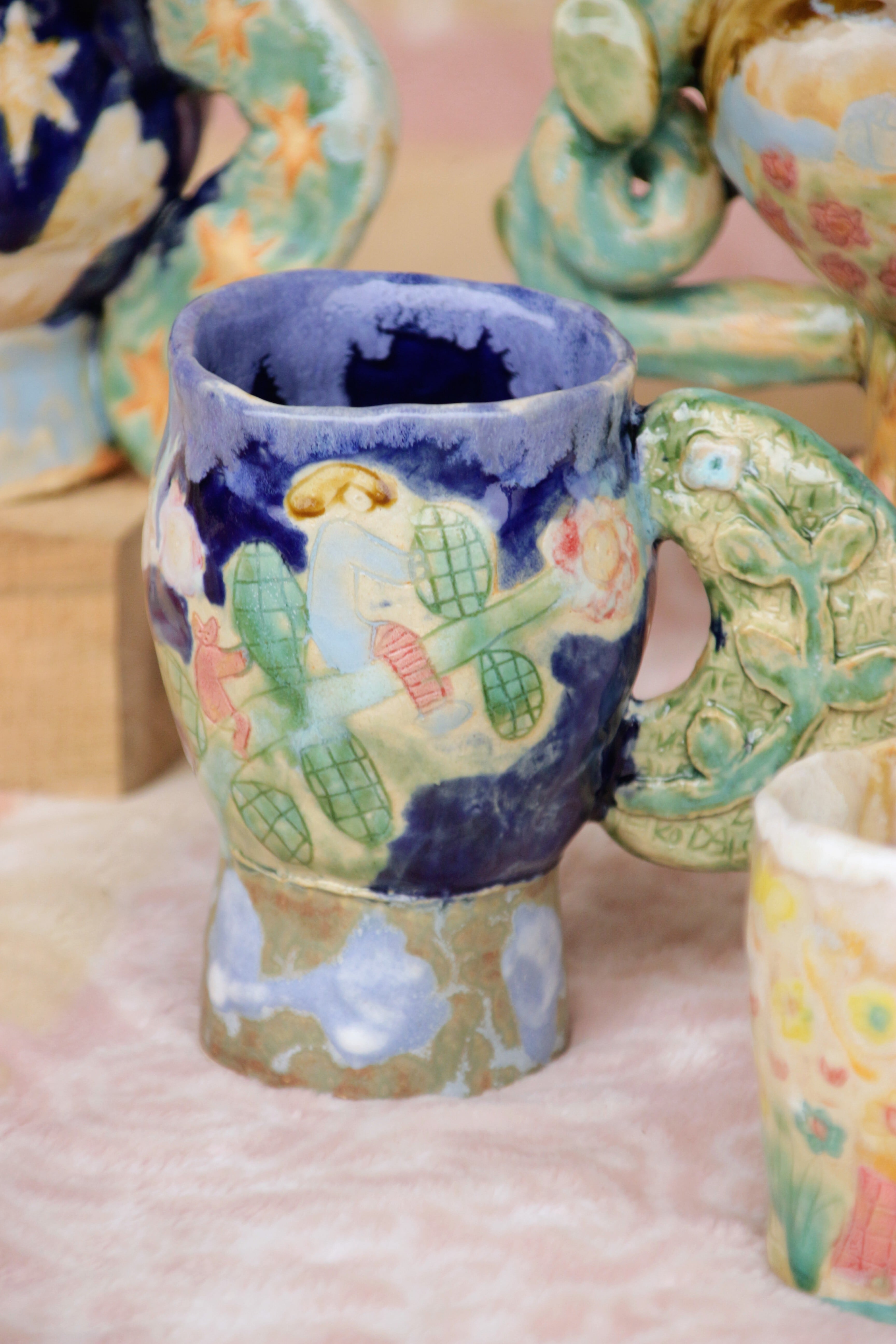 生活の中で欲しいなと思ったものをつくり、生き物や植物を陶芸の中に描いています。