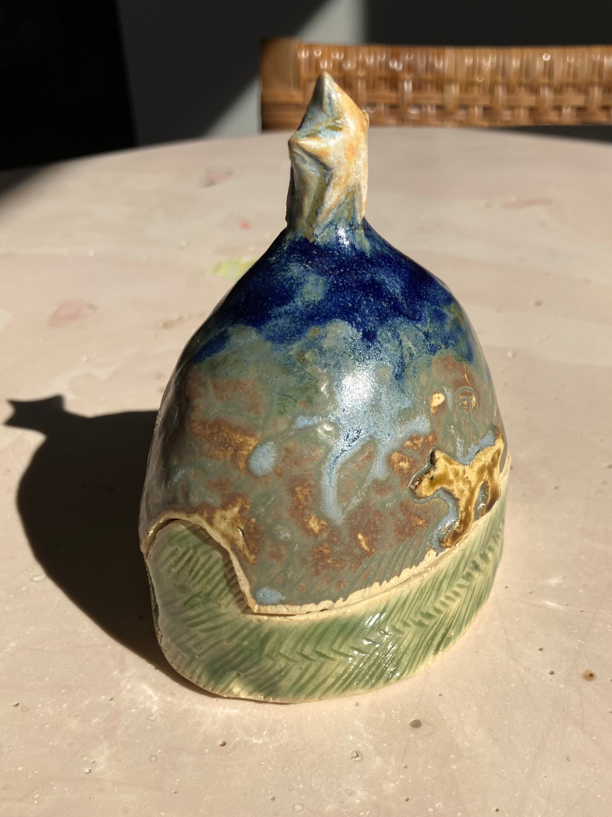生活の中で欲しいなと思ったものをつくり、生き物や植物を陶芸の中に描いています。