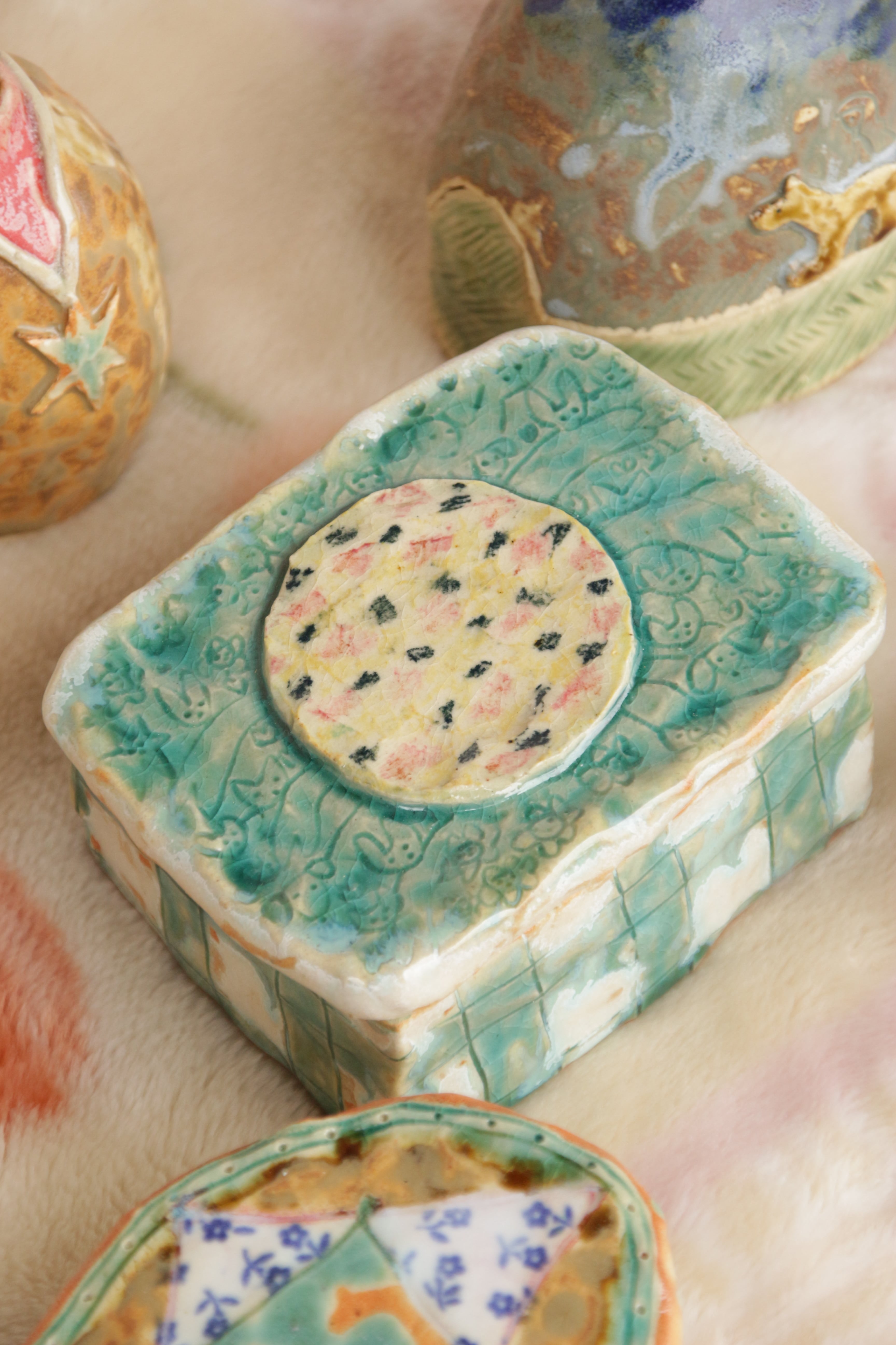 生活の中で欲しいなと思ったものをつくり、生き物や植物を陶芸の中に描いています。