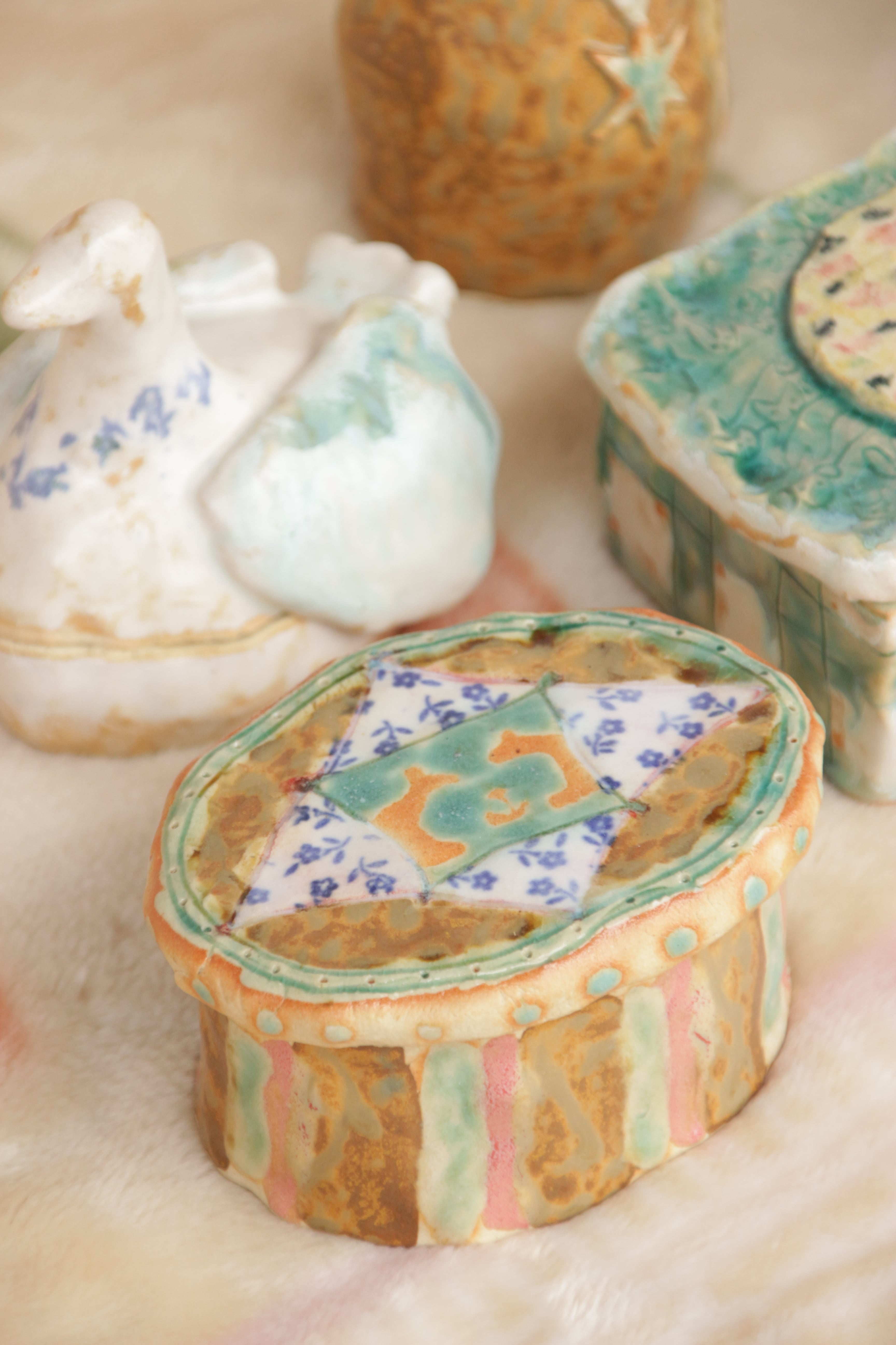 生活の中で欲しいなと思ったものをつくり、生き物や植物を陶芸の中に描いています。