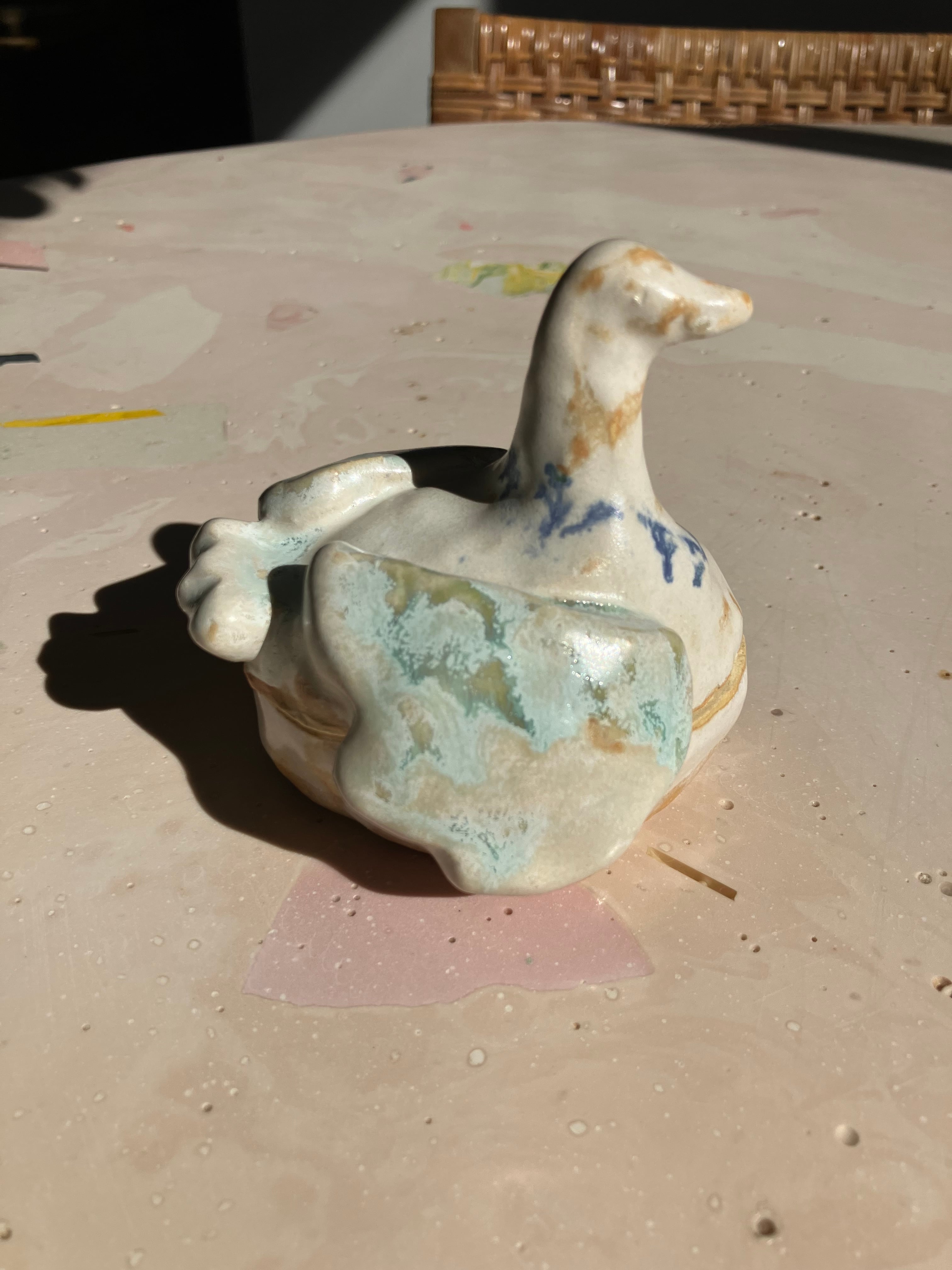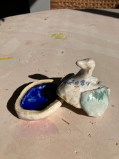 生活の中で欲しいなと思ったものをつくり、生き物や植物を陶芸の中に描いています。
