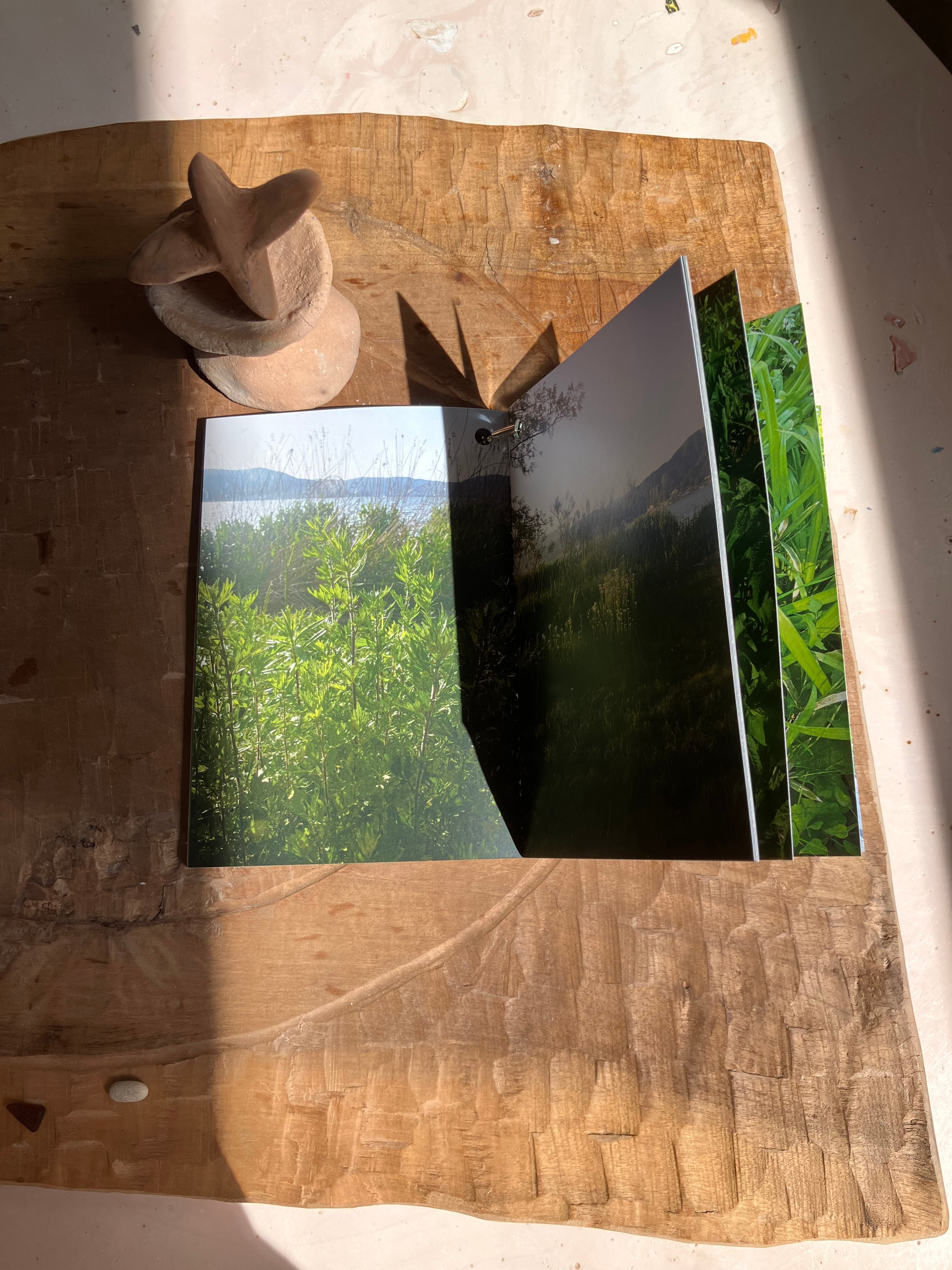 この写真集は、湖、山、植物の待っているそれぞれのスケールの横に自分の体のスケールを隣り合わせて、それらの境界に起こる時間、天気、距離の伸び縮みを観察することを目指して作られました。